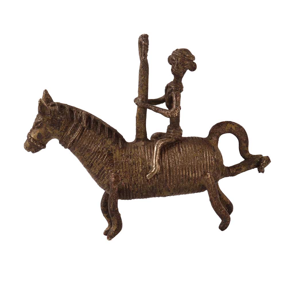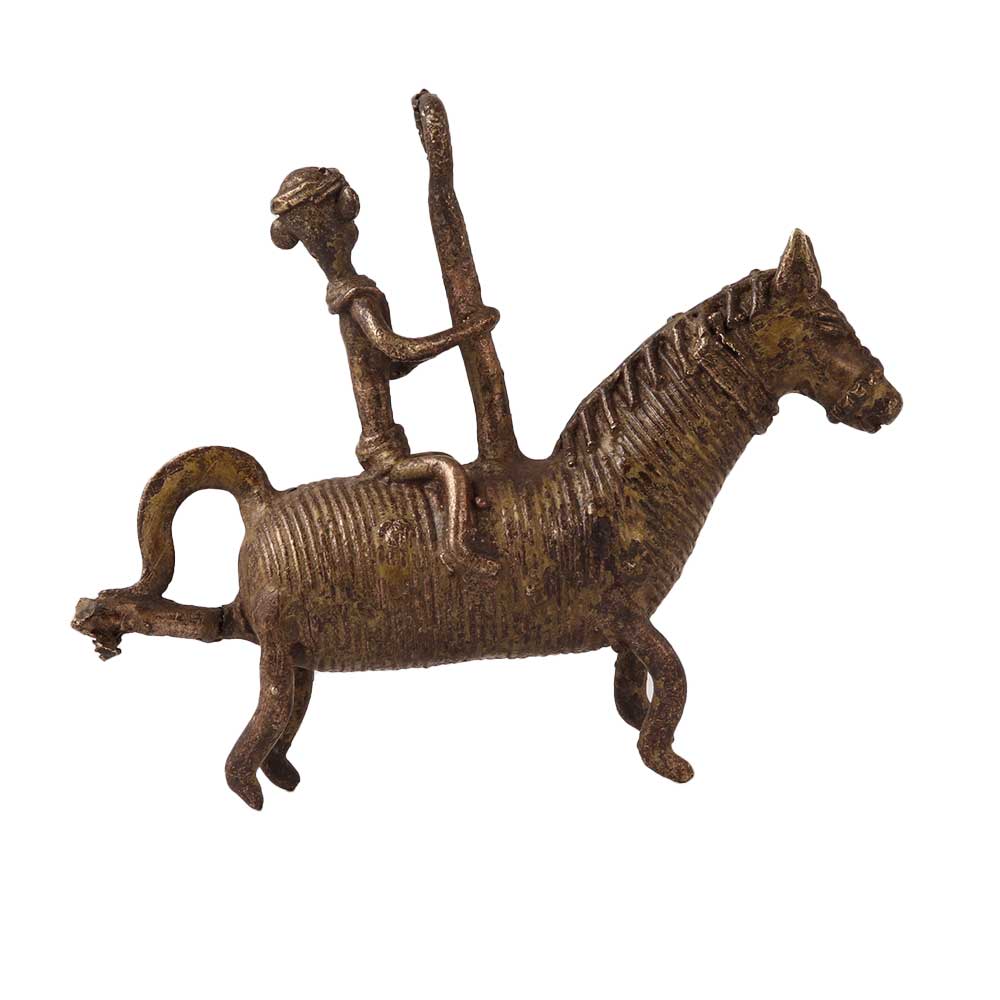 Hanging Brass Horse and Rider Statue in Tribal Art