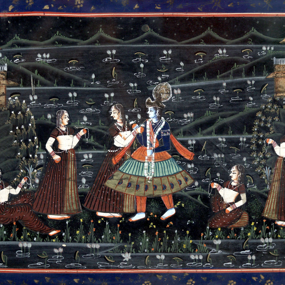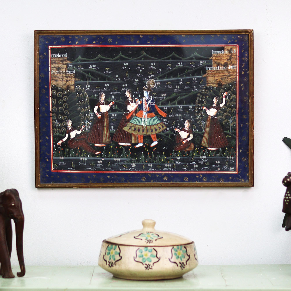 - Authentic Rajasthani cloth painting of Lord Krishna with Gopies