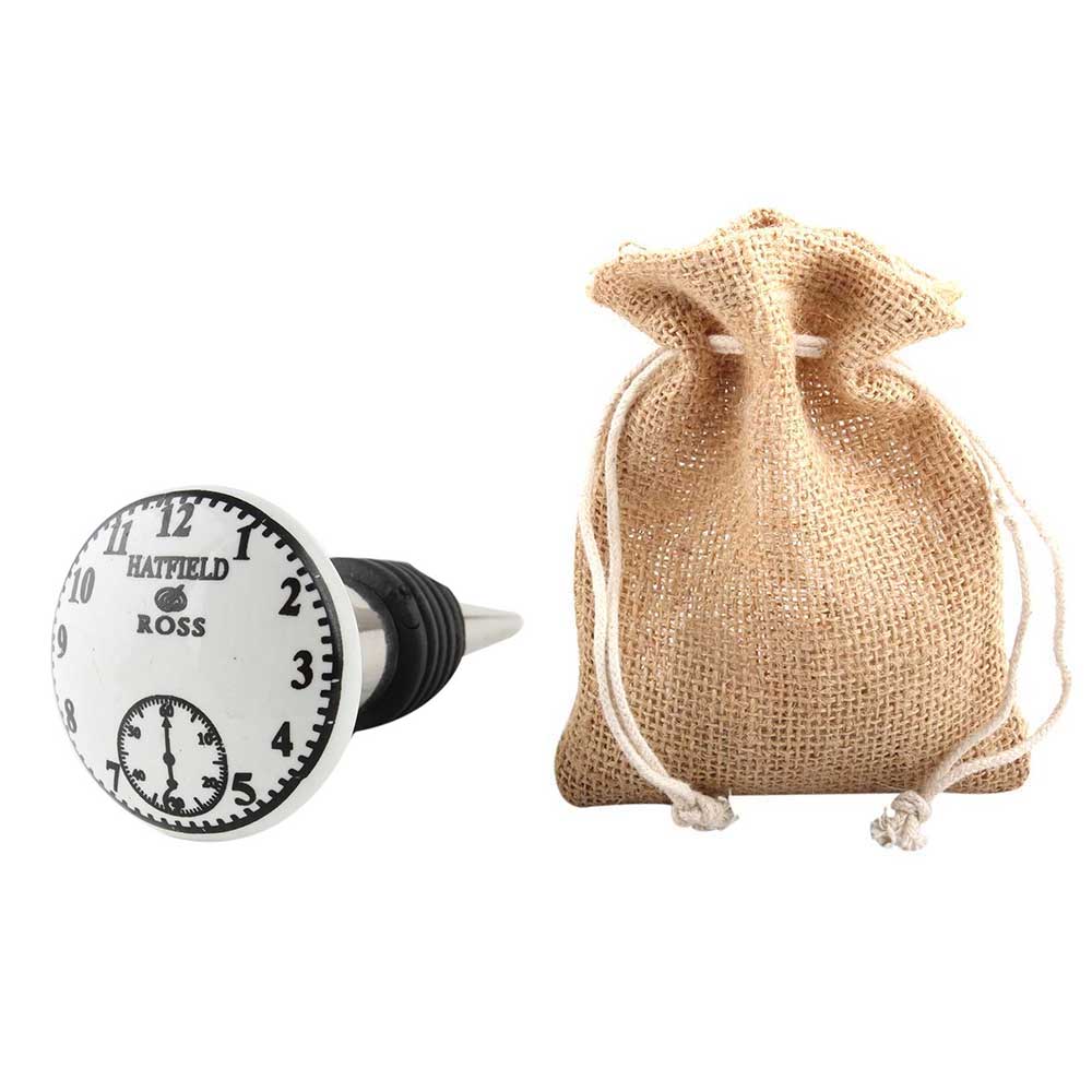 Hatfield Ross White Flat Ceramic Wine Bottle Stopper. Zinc Alloy Wine Bottle Stopper with Attractive Jute Bag Packaging.