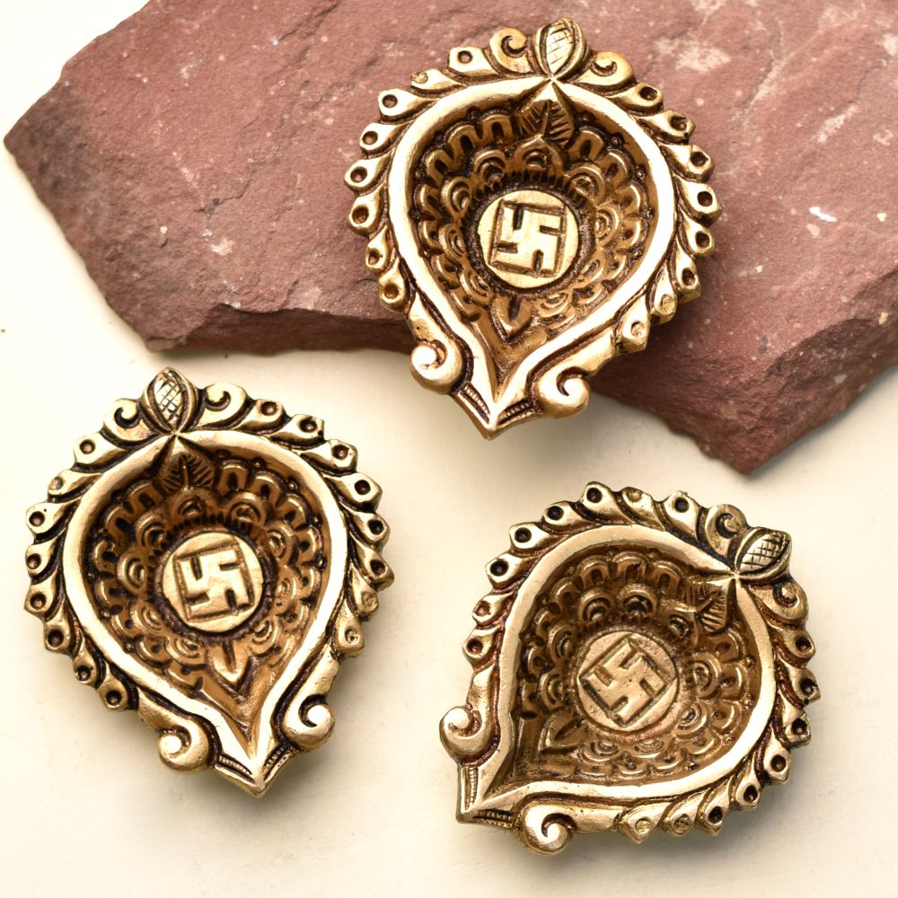 Celebrate love, prosperity, and divine blessings with this Heart Shaped Swastika Brass Diya. Handcrafted from solid brass with a radiant golden finish, it beautifully combines the heart shape, symbolizing love and devotion, with the sacred Swastika, representing positivity and prosperity. Perfect for Diwali, daily puja, and spiritual gifting, this diya adds both warmth and sacred energy to your rituals.