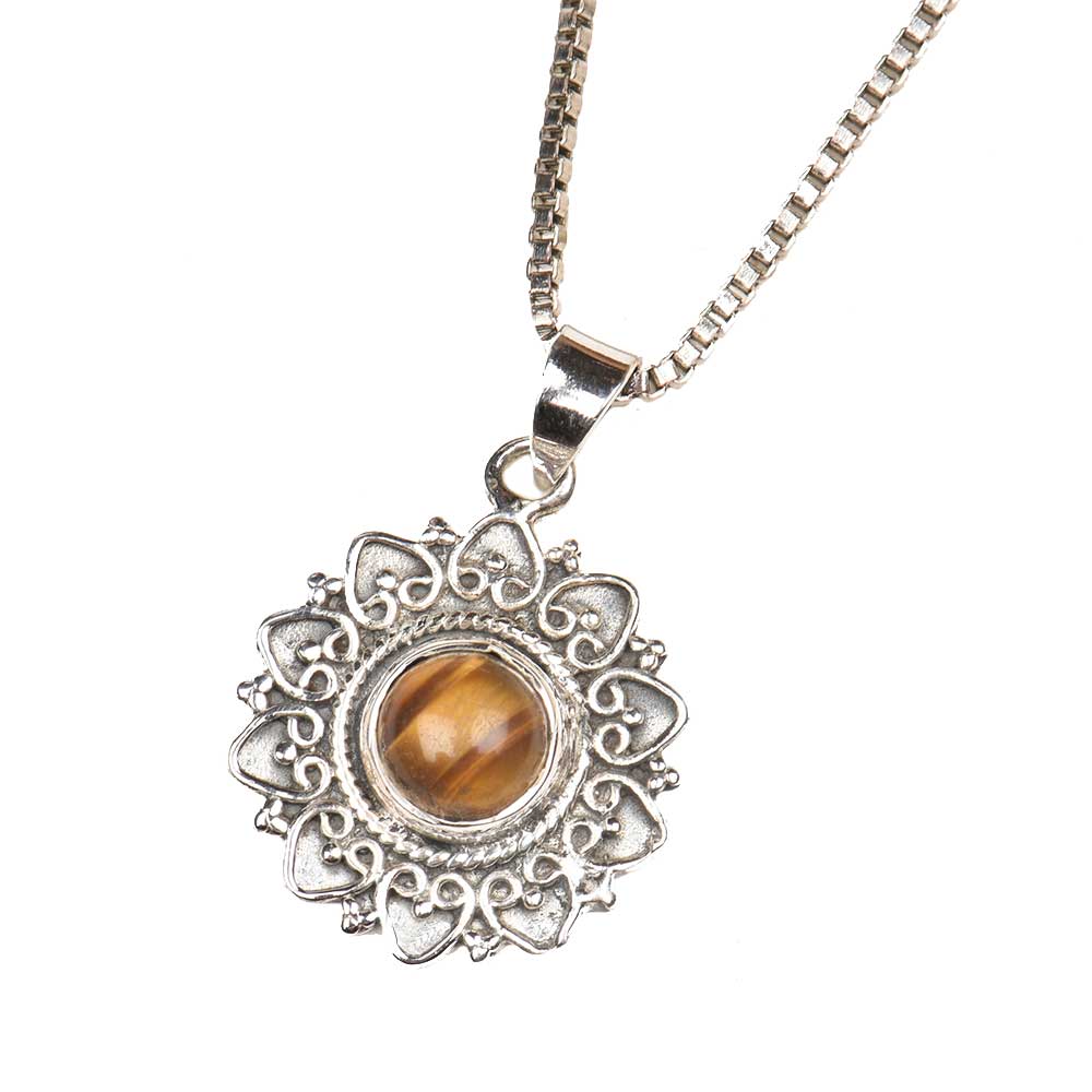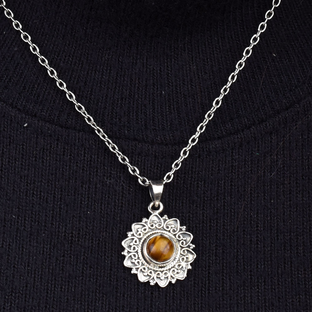 • Hearts Floral 92.5 Sterling Silver Pendant With Round Semi Precious Stone