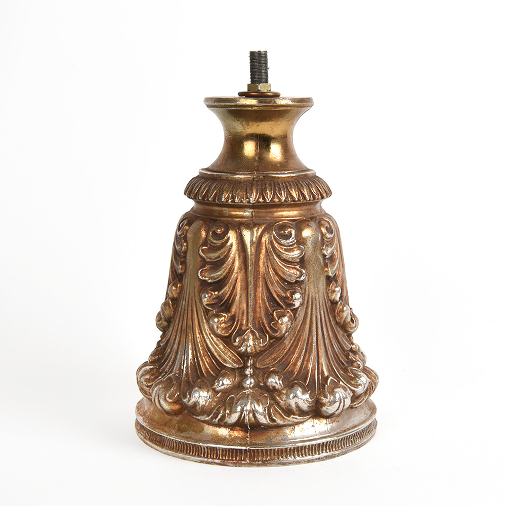 Mid century heavy metal lamp stand with beautiful vintage carvings. The lamp is unique and allows a great lighting option for any room.