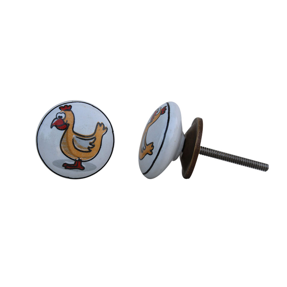 Designed with durability in mind, the Hen Flat Kids Ceramic Knob is made to withstand the rigors of daily use. Its sturdy ceramic material ensures that it can handle regular turning and pulling without losing its charm. Whether used on drawers, cabinets, or doors, this knob is built to last and maintain its playful look over time.