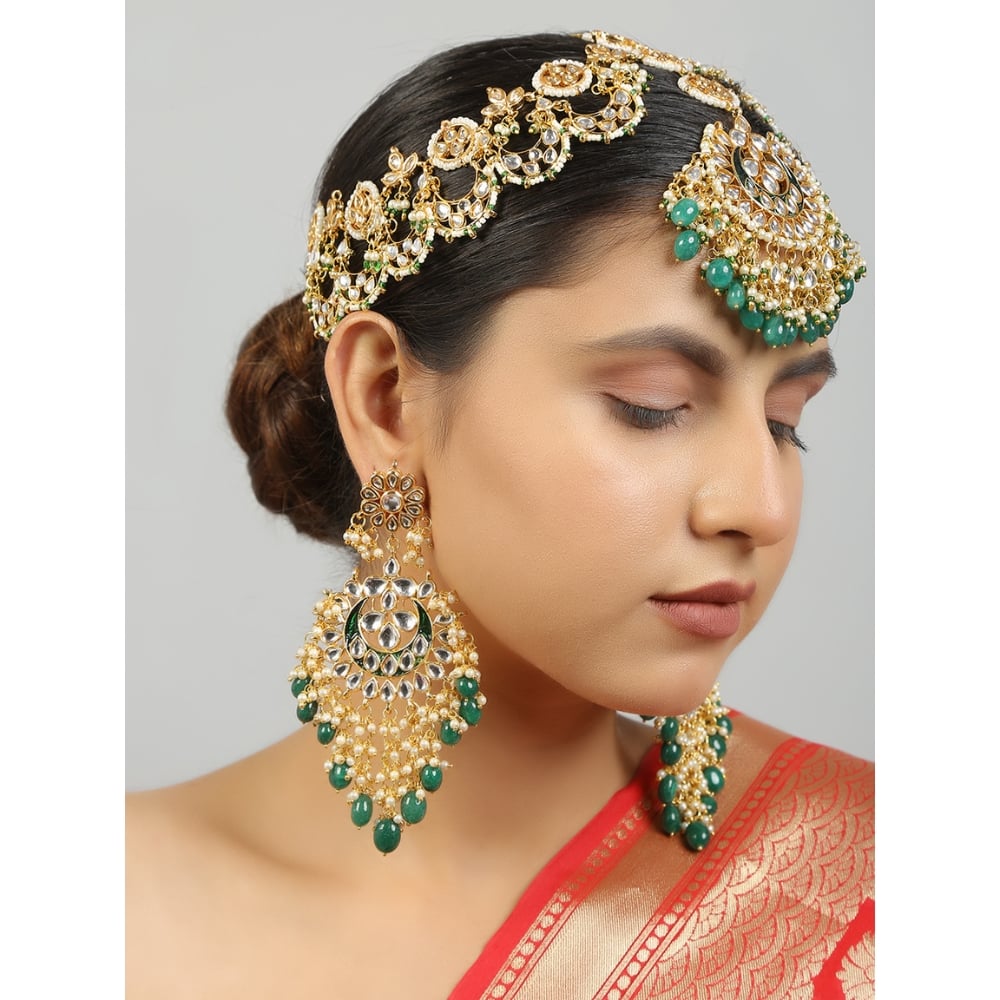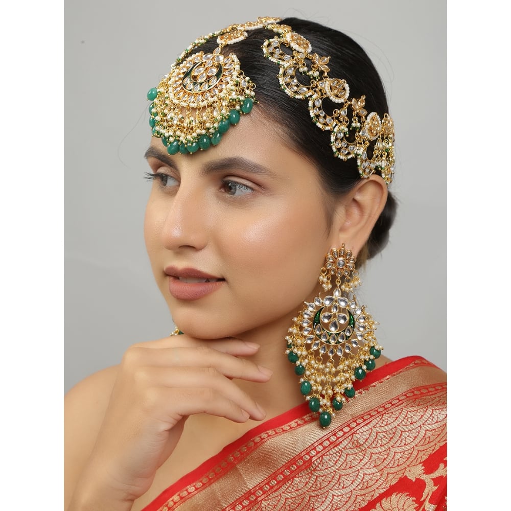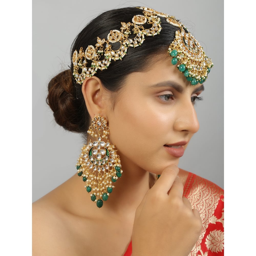• Set Includes: Crescent maang tikka, matching earrings, and head jewelry
