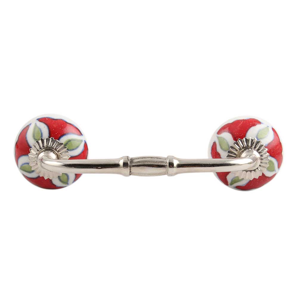 Hibiscus Green Flower Ceramic Bridge Handle. Ideal for Drawer, Dresser, Cabinet, Wardrobe, Cupboard and Almirah.