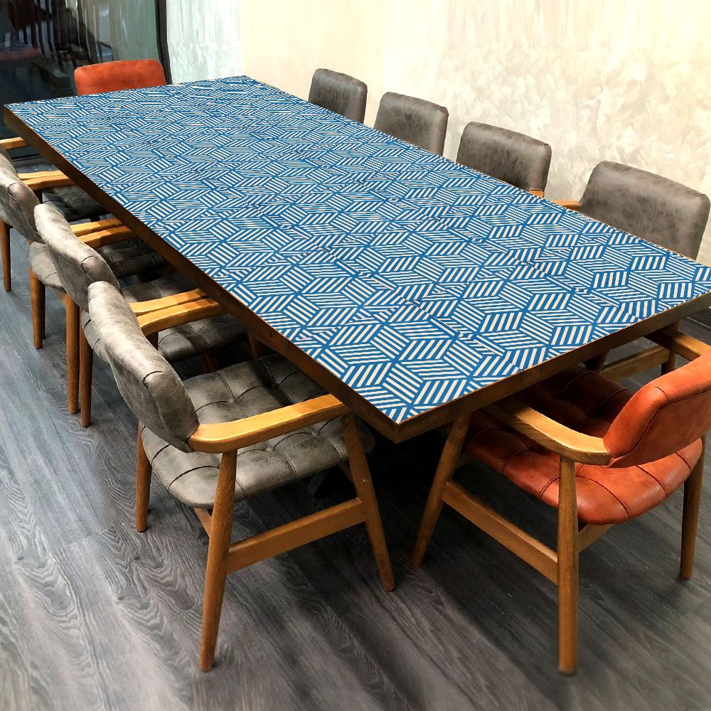 The Wood, Acrylic, and Resin Table Top, featuring a captivating blue and white cubes pattern engraved with meticulous precision. This table top is a magnificent decorative piece that effortlessly enhances the aesthetic appeal of any space, be it your dining table, coffee table at home, office, restaurant, or hotel. Handcrafted by highly skilled Indian craftsmen, this table top is a testament to their artistry and expertise. The fusion of wood, acrylic, and resin creates a unique visual texture that draws attention and admiration. Its vibrant colours add a lively touch to any setting, while the high-quality craftsmanship ensures durability and longevity. With its eye-catching design and impeccable finish, this table top also makes for an ideal gift for your loved ones on special occasions. Whether adorning dining tables, patio tables, or desks, this masterpiece is guaranteed to leave a lasting impression, elevating the ambiance of any space with its undeniable charm and sophistication.