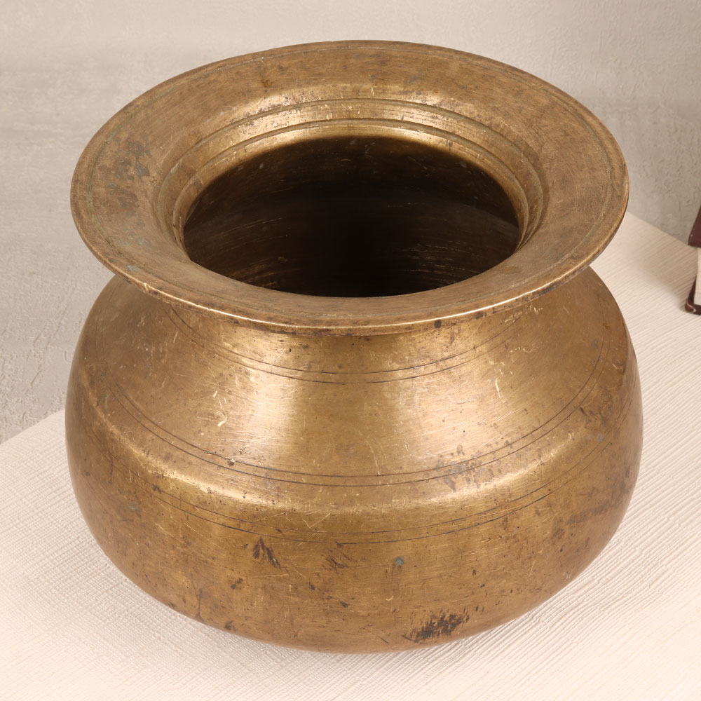 Decorate your living room with the timeless charm of our Vintage Brass Holy Pot that is a testament to exquisite craftsmanship and South Indian Artistry. Handmade by highly skilled and experienced artisans in India, this pot boasts a rich antique brown finish, adding a touch of sophistication to any environment. Crafted from high-quality brass, it exudes durability while embracing the authenticity of traditional craftsmanship. Versatile and captivating, this holy pot doubles as a unique flower pot, seamlessly blending spirituality with aesthetics. Whether adorning your home, office, restaurant, hotel, or cafe, its elegant design complements any setting. Embrace the nostalgia of a bygone era by incorporating it into your vintage collection, or gift it to your loved ones on special, festive, or auspicious occasions.