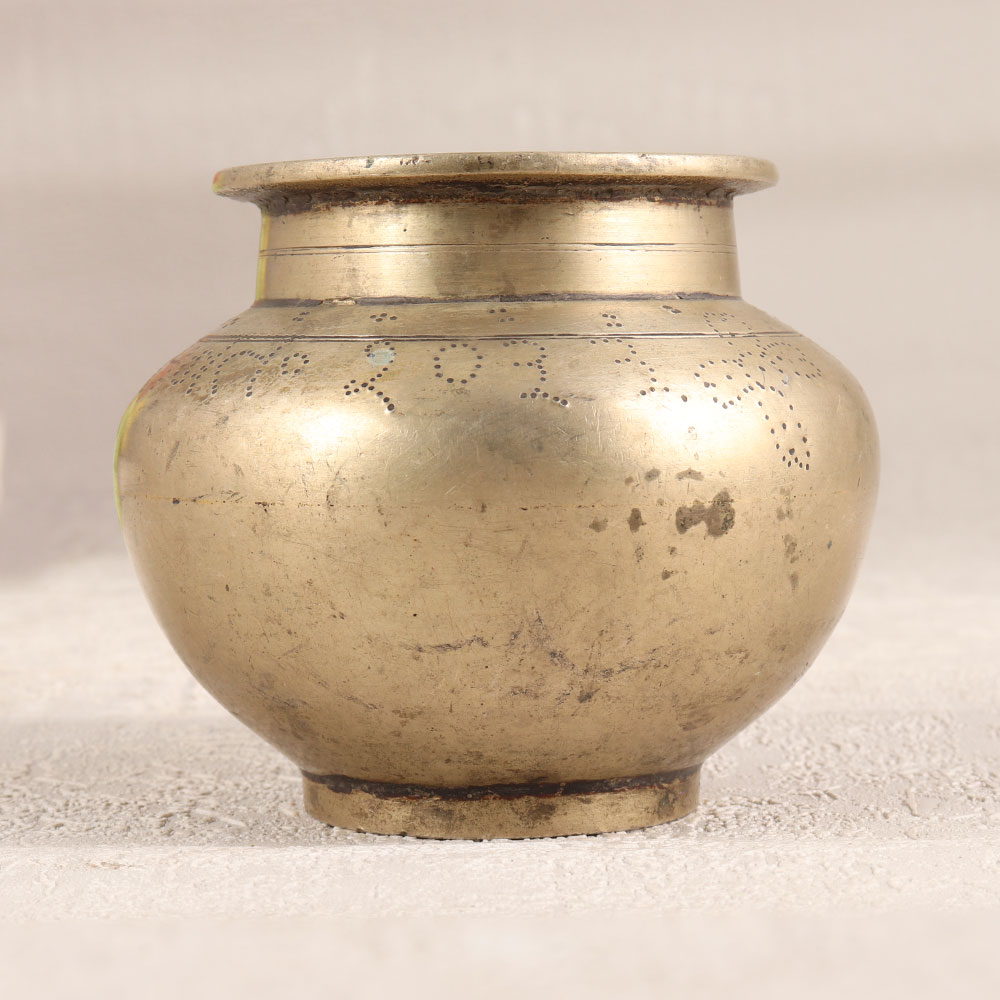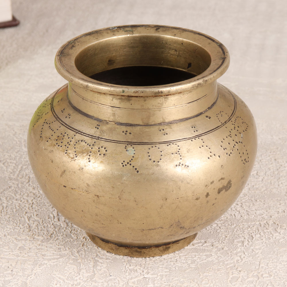 Add a touch of timeless elegance to your sacred space with our Vintage Brass Holy Water Pot. Meticulously handcrafted by highly skilled Indian artisans from Himachal, this exquisite lota exudes authenticity and charm. Crafted from high-quality Brass, its antique brown finish evokes a sense of history and reverence, making it a perfect companion for prayer, havan, and auspicious occasions. Versatile in function, the pot serves as a vessel for holy water during religious ceremonies and also doubles as a stunning receptacle for vibrant flowers, enhancing the ambiance with its classic allure. Its enduring craftsmanship and antique aesthetic make it a captivating addition to any home, office, restaurant, hotel, or cafe, serving both decorative and spiritual purposes. Whether displayed as a standalone piece or integrated into a vintage collection, this holy water pot is a unique expression of cultural heritage. Thoughtful and meaningful, it makes for an ideal gift for loved ones on special, festive, or auspicious occasions.