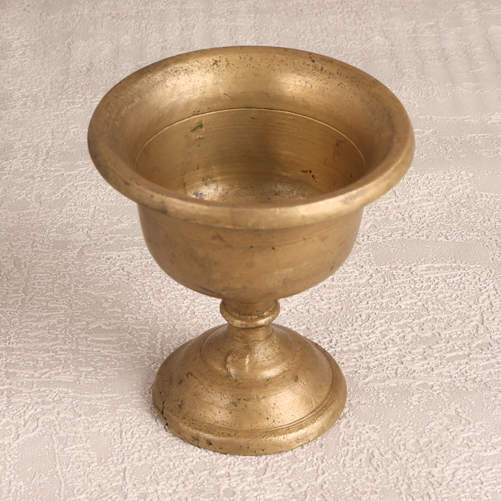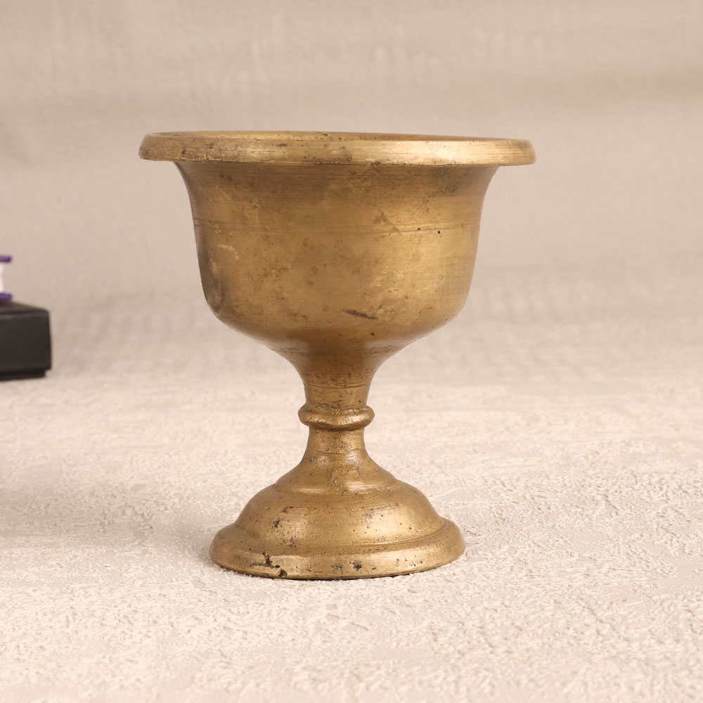 Buy a Vintage Brass Holy Kumkum Cup online from our website and get a hassle free delivery right at your doorstep. Meticulously handcrafted by highly talented Indian artisans in the time-honoured South Indian art tradition, this cup boasts a rich antique brown finish that exudes timeless elegance. Crafted from high-quality brass, it not only stands as a testament to the artisan's craftsmanship but also adds a touch of tradition and splendour to your surroundings. This versatile piece serves a dual purpose - it is perfect for prayer, as it can hold kumkum, tilak, or bindi during your devotional moments. Additionally, it makes for a stunning decorative item that can grace the ambiance of your home, office, restaurant, hotel, or cafe prayer room. Whether adorning your sacred space or enhancing your interior decor, this cup adds a touch of heritage and spirituality to any setting. A thoughtful and meaningful gift, this Vintage Brass Holy Kumkum Cup is an ideal choice for special, festive, or auspicious occasions.