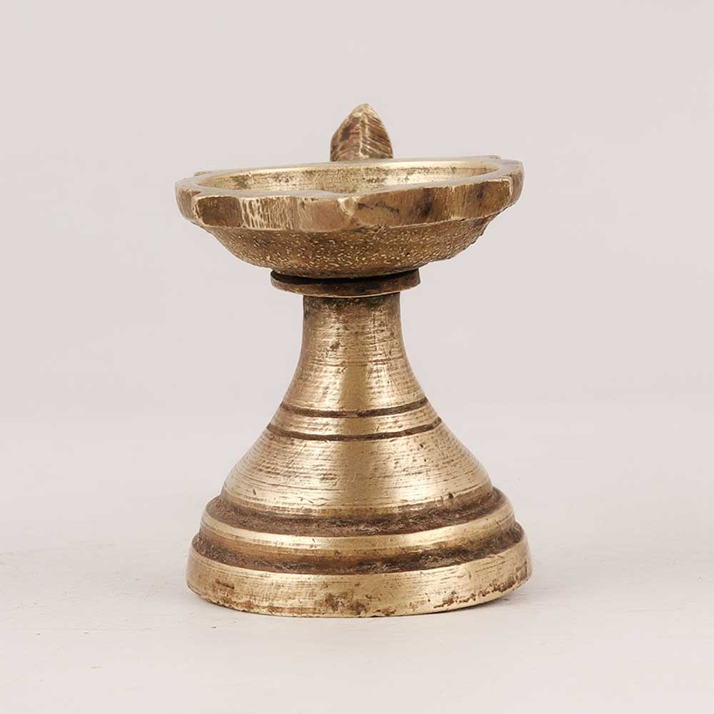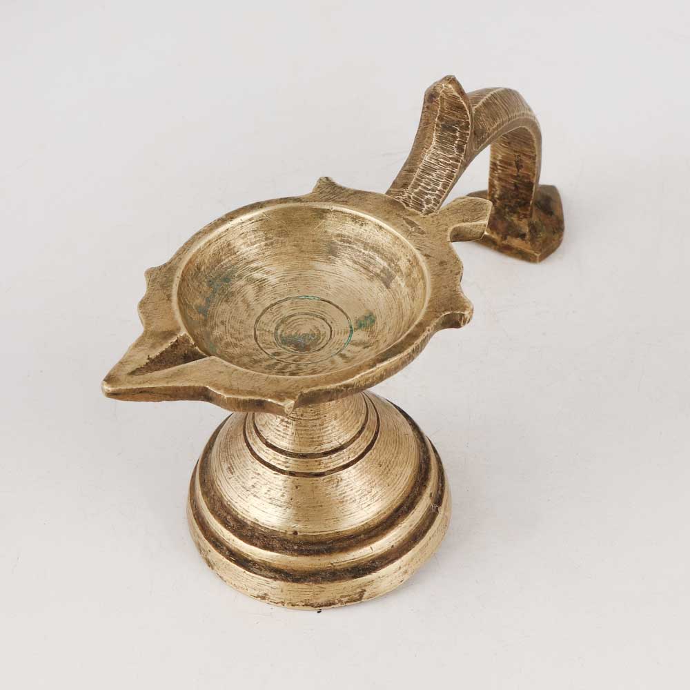 Step back in time with this exquisite vintage brass Aarti Oil Lamp, meticulously handcrafted by highly skilled and experienced Indian artisans. The lamp features an antique brown finish that adds an aura of old-world charm and elegance. With its sturdy handle, this lamp exudes a classic appeal and is perfect for use during worship rituals in your home, office, restaurant, hotel, or cafe prayer room. The Aarti Oil Lamp is designed to hold traditional ingredients like mustard oil or ghee, which, when combined with cotton wicks, create a mesmerizing and serene ambiance during prayers and ceremonies. Not just limited to religious purposes, this lamp can also be a splendid addition to your interior decor, adding a touch of timeless beauty to any space. Additionally, collectors and enthusiasts can proudly display this piece in exhibitions or include it in their cherished vintage collection. With its timeless design and craftsmanship, this lamp becomes a thoughtful and memorable gift for your loved ones on special or festive occasions, symbolizing blessings, love, and tradition passed down through generations.