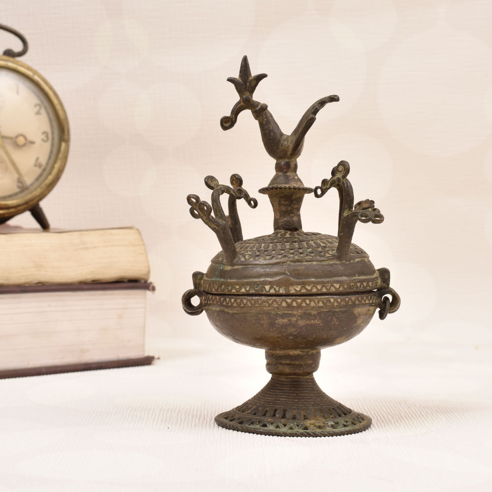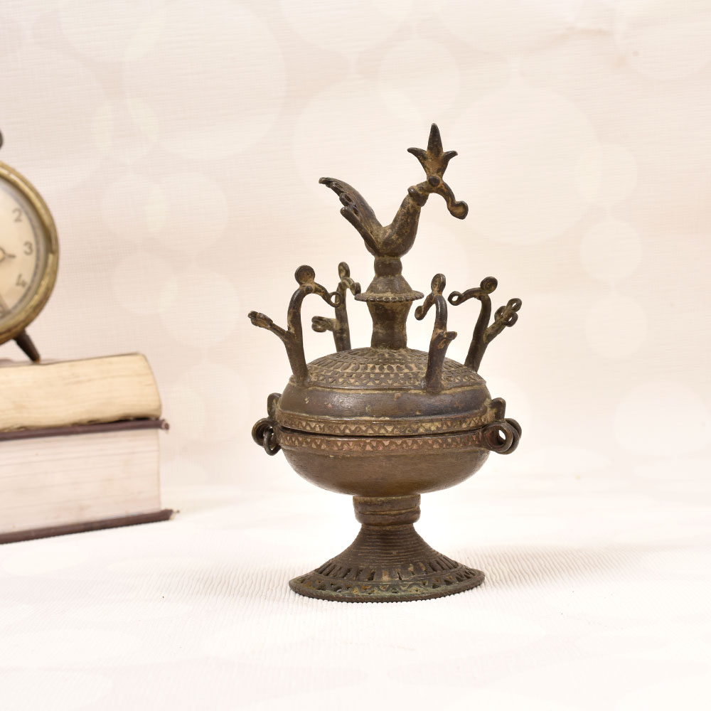 - Intricate peacock carving in Tribal Art style adorns the lid for a touch of cultural flair