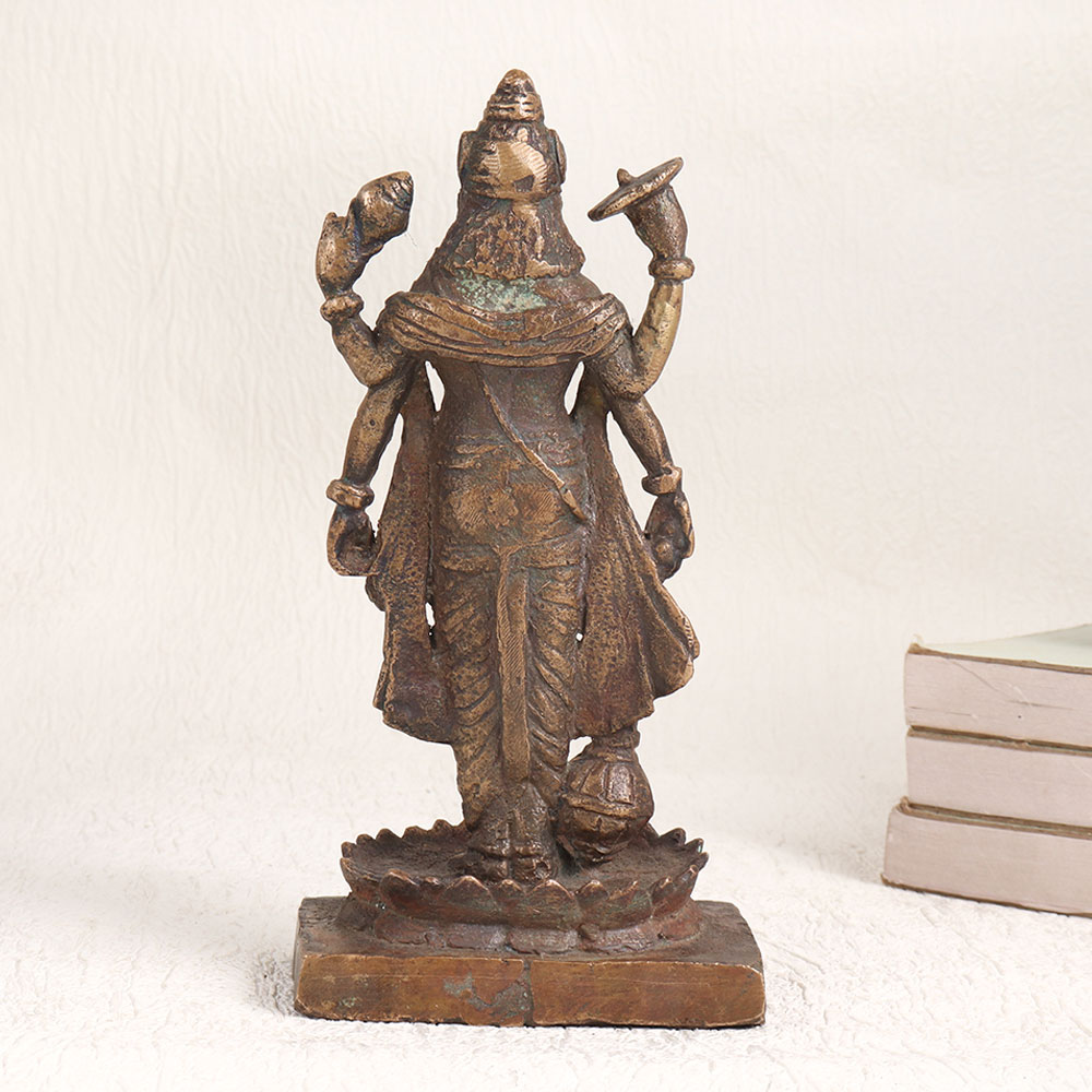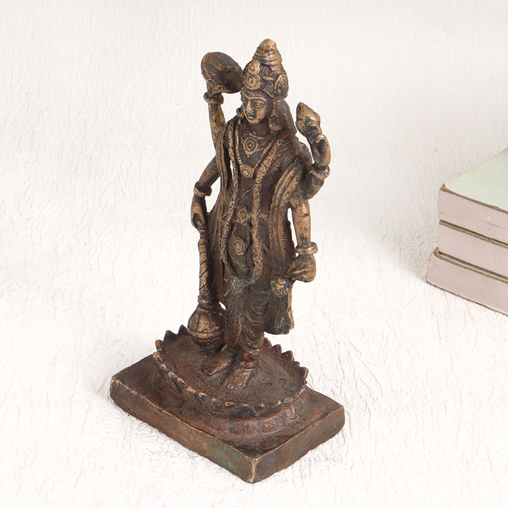 Buy a Brass Statue of Lord Vishnu online that is meticulously crafted by talented Indian artisans, and showcases a divine representation of Lord Vishnu, the preserver of the universe in an antique brown finish. Crafted with unwavering devotion and precision, this masterpiece is a testament to the rich heritage and craftsmanship of India. Made from high-quality brass, the statue exudes a timeless elegance that complements any setting. Whether you choose to place it in your home, office, restaurant, hotel, cafe, or shop, this statue serves as a symbol of divine grace and a focal point for worship or decoration. Its intricate details and warm, antique brown finish make it a captivating addition to any space. Beyond personal use, this brass statue is perfect for collectors and exhibitors seeking to enrich their vintage collection or enhance the allure of an exhibition. Additionally, it makes for a thoughtful and meaningful gift for your loved ones on special, festive, or auspicious occasions, imparting blessings and positive energy to their lives.