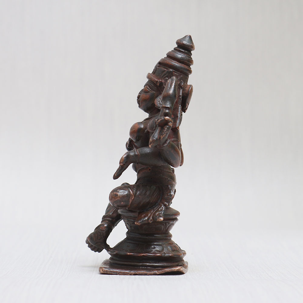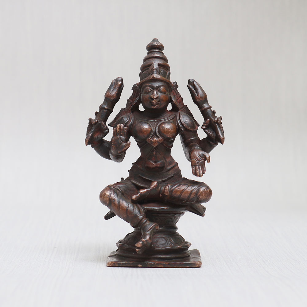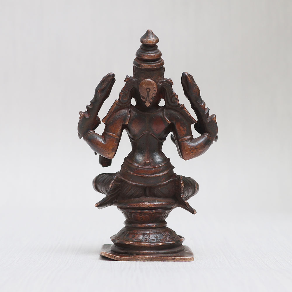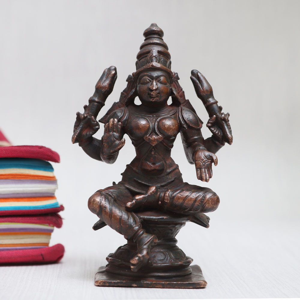 Buy a handmade vintage copper statue of Goddess Lakshmi Seated in a blessing position, crafted with utmost precision by skilled Indian artisans. This mesmerizing idol of the Hindu Goddess Maa Lakshmi is an epitome of beauty, grace, and abundance, radiating positive energy wherever it is placed. Made from high-quality copper, this statue showcases intricate details and a stunning antique finish, adding a touch of elegance to any space. Ideal for adorning your home, office, restaurant, hotel, or cafe temple, this divine masterpiece not only serves as a symbol of devotion but also doubles as a remarkable decorative piece. It is also perfect for collection, exhibition, or as a memorable gift for your loved ones on special, festive, or auspicious occasions. Goddess Lakshmi, the embodiment of wealth, prosperity, and fortune, is revered in Hindu mythology. Worshipping her brings blessings of abundance and success. Explore our exclusive collection of Indian god statues to buy online and cherish the divine presence of Goddess Lakshmi in your surroundings.