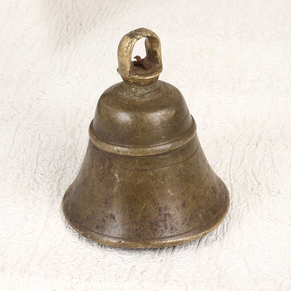 Ring in mindfulness with this gorgeous vintage bell metal temple bell. Handcrafted in the Himalayan foothills of Himachal Pradesh, this bell features an elegant loop handle for easy hanging anywhere. With its rich, resonant tone, it’s the perfect way to create an ambiance of calm and focus. Let the pure sound of this bell wash over you, transporting you to a place of peace and presence. Each ring lingers in the air, focusing your mind on the present moment. This handmade bell brings the tranquility of an ashram to your home. Ideal for yoga and meditation practitioners looking to enhance their practice. The rhythmic ringing provides a focal point for breathing and mantra work. Use it to open and close your sessions or any time you need to reset and relax. The tonal vibrations are said to purify negative energy as well.