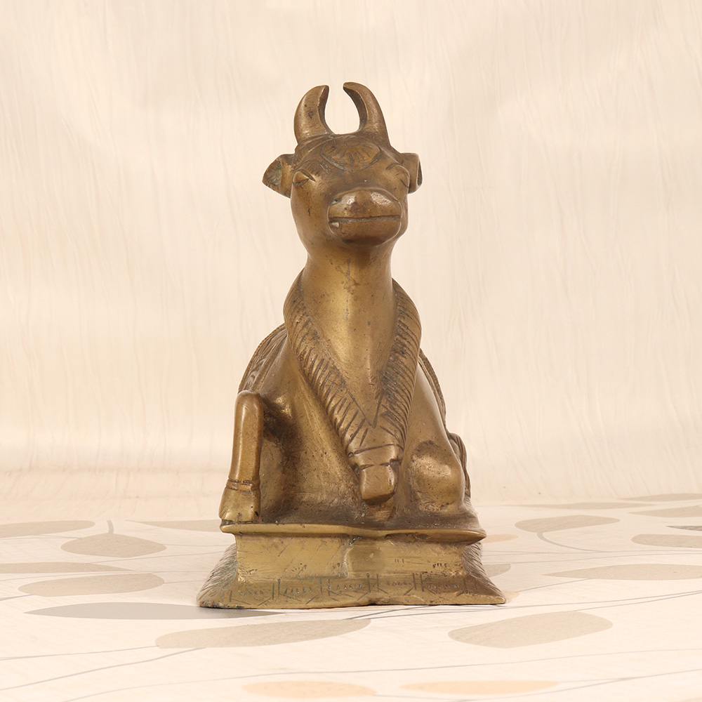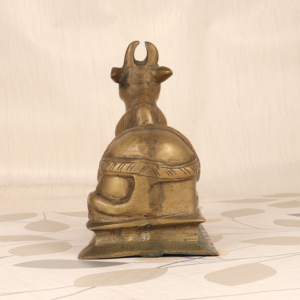 Discover the captivating essence of ancient Himalayan artistry with this exquisite brass Lord Nandi statue. Crafted with meticulous detail, this timeless masterpiece embodies the sacred reverence and spiritual significance of the revered Nandi, the loyal vehicle of Lord Shiva. Invite the blessings and divine energy of Lord Nandi into your home or sacred space. This magnificent statue serves as a powerful reminder to cultivate steadfastness, devotion, and protection in your life. Allow its majestic presence to inspire you to embody the unwavering loyalty and strength of the Nandi, the eternal guardian of Lord Shiva. Transform your environment into a harmonious sanctuary where the divine and the earthly converge, elevating your daily experience with the timeless wisdom of Himalayan spirituality. Whether you are a collector of fine art, a devotee seeking a meaningful spiritual centerpiece, or simply someone drawn to the captivating aesthetics of Himalayan culture, this Lord Nandi statue is a must-have addition to your home. Immerse yourself in the captivating energy of this sacred icon and let it guide you on a journey of deeper connection, reverence, and personal growth.