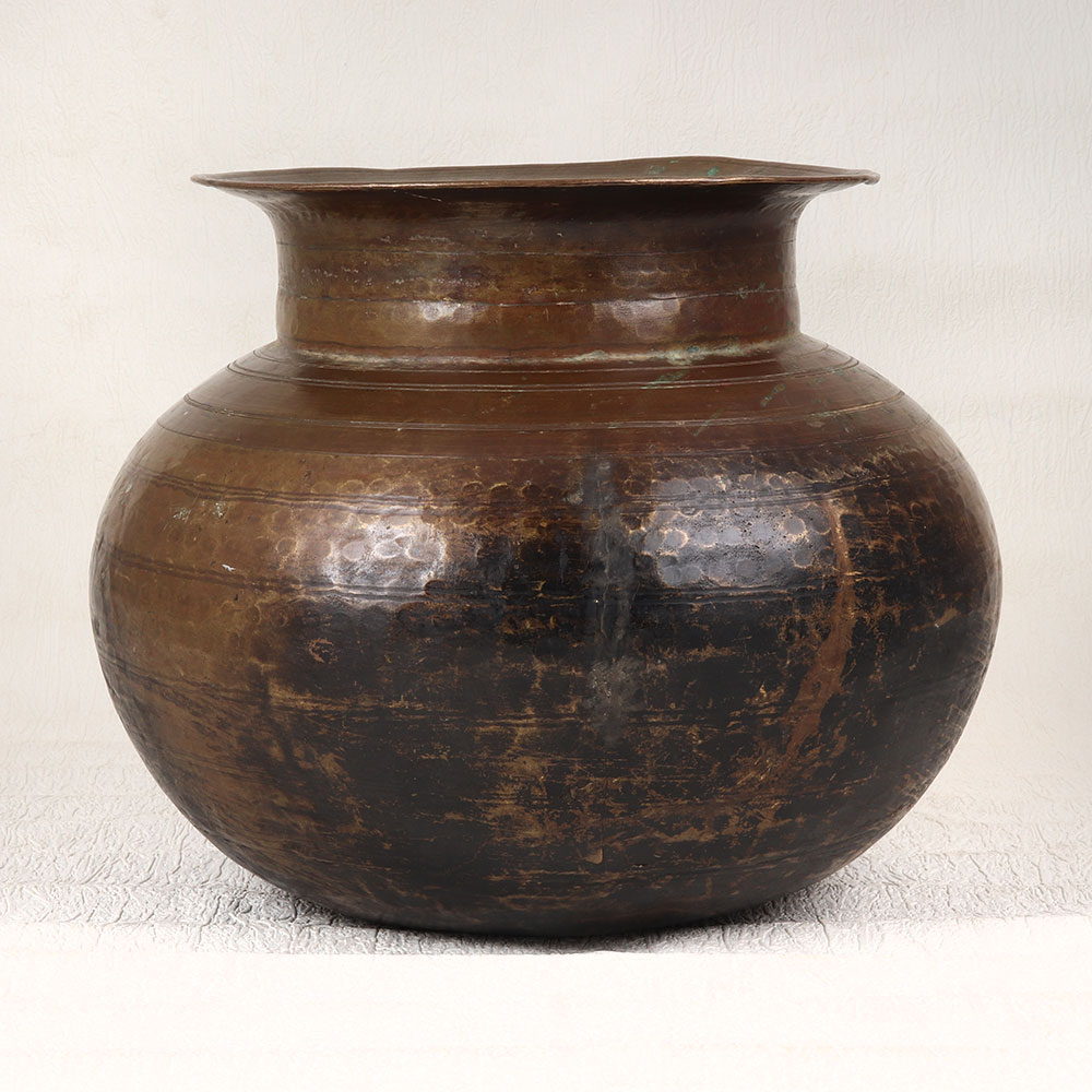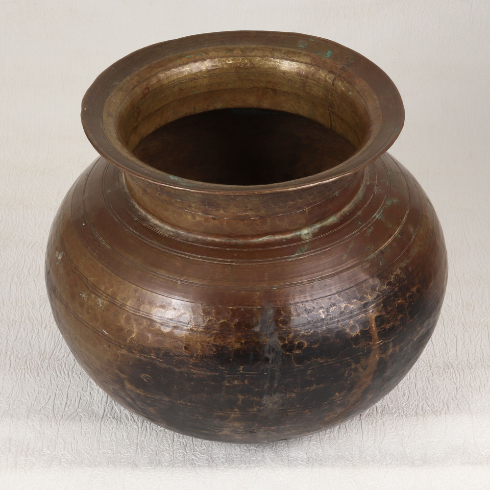 Buy a Vintage Brass Water Pot with an enchanting antique brown finish that is meticulously handcrafted by skilled Indian artisans in the timeless tradition of Himalayan Art. This unique piece showcases the rich cultural heritage and craftsmanship of the region, making it a true testament to the artistry passed down through generations. Crafted from high-quality brass, this water pot is not just a functional item but a work of art that adds an air of sophistication to any space. Its antique brown finish imparts a warm and rustic charm, creating a nostalgic ambiance reminiscent of bygone eras. Perfect for both traditional and contemporary settings, it effortlessly enhances the aesthetic of homes, offices, restaurants, hotels, or cafes. Versatile in its use, this pot doubles as an indoor flower pot, bringing nature's beauty into your living spaces. It's a statement piece that can be proudly displayed as part of a vintage collection, adding character to your decor. Furthermore, this timeless creation makes for an ideal gift for your loved ones on special, festive, or auspicious occasions, symbolizing not just a material possession but a cherished piece of cultural history and artistry.