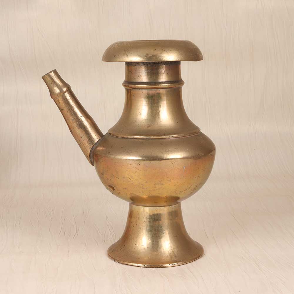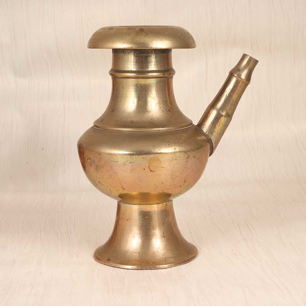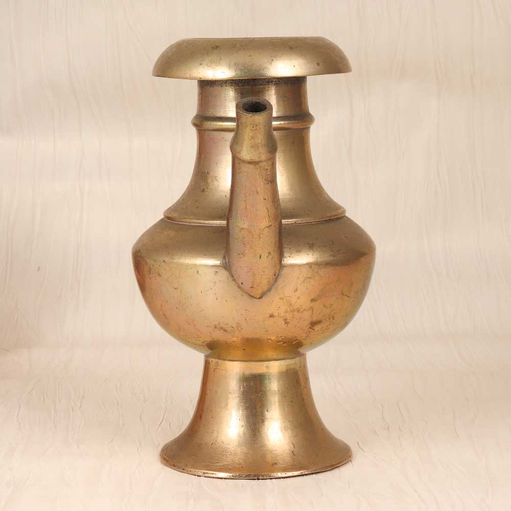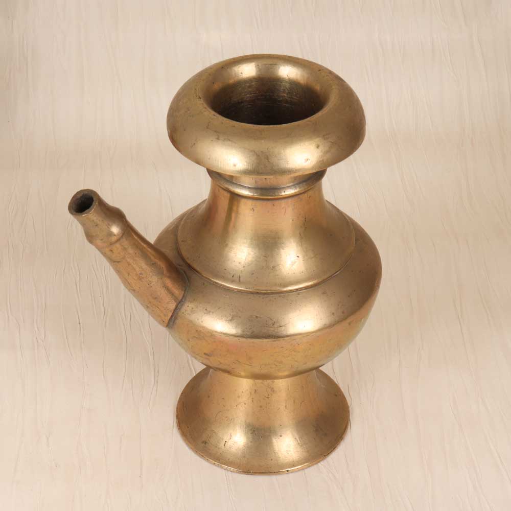 Add a touch of elegance to your home with this vintage brass holy water pot. With its elegant spout design and plain brown finish, this pot allows you to easily dispense holy water in a beautiful way. This vintage brass pot is perfect for storing and dispensing holy water in any home. The brass construction gives it a classic, timeless look that adds a decorative accent to any space. Meanwhile, the spout allows you to neatly pour out holy water for use in blessings and rituals. If you want a special vessel to store holy water for religious purposes, this vintage pot is an excellent choice. The antique styling gives an air of sacred tradition to your home decor. Plus, it allows you to share holy water with family and friends in a gracious manner.