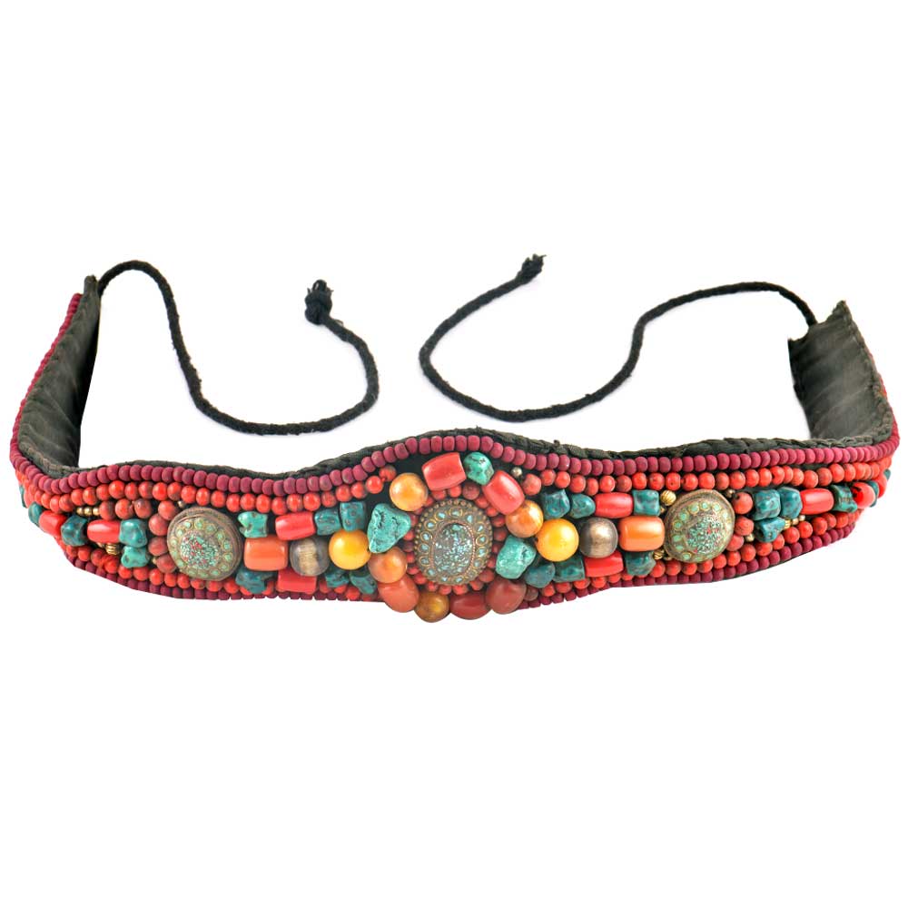 Semi precious corol AND turquoise stones from the highlANDs of Ladakh in Kashmir, embedded to form this cool AND snazzy accessory. All natural AND handmade by artisans tucked in the crevices of the himalayas, each piece upholds the values of being eco friendly AND carbon neutral.