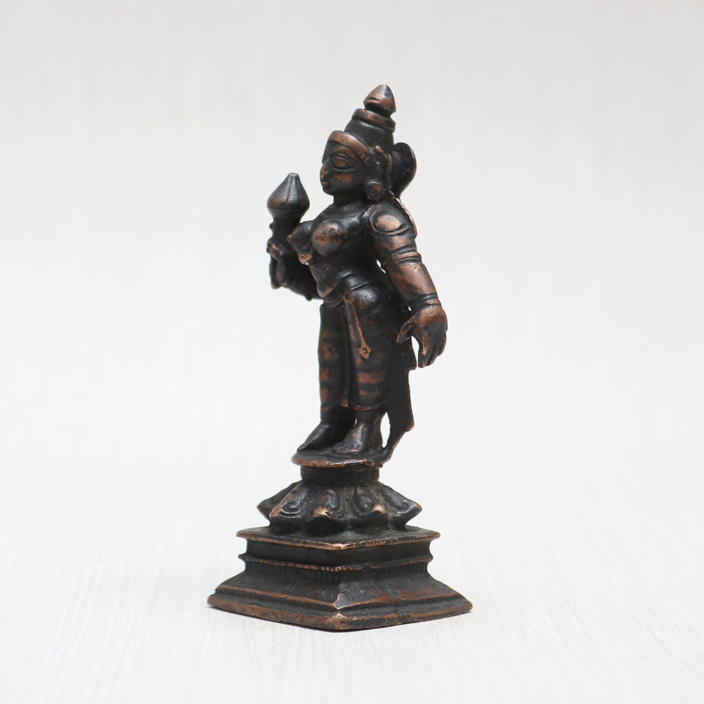 Buy Hindu Goddess Maa Parvati Copper Statue online which is a stunning work of art meticulously handcrafted by highly skilled Indian artisans using high-quality copper. This awe-inspiring statue captures the divine essence of Goddess Parvati in a timeless vintage style finish. With its eye-catching detailing and intricate design, this statue is an ideal addition to your prayer room at home, office, restaurant, cafe, or shop. Its spiritual significance makes it a perfect item for exhibitions, decorations, and collections. Whether adorning a temple for worship or serving as a focal point in your sacred space, this statue radiates devotion and grace. Looking for a thoughtful gift? This elegant copper statue is perfect for surprising your loved ones on special, festive, or auspicious occasions. Explore the rich collection of god idols online and discover the allure of small god idols for your pooja room.