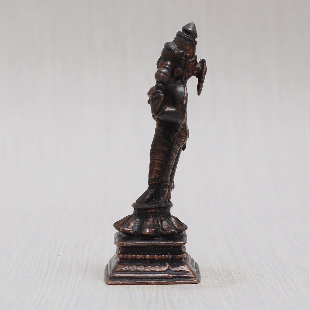 Buy a Hindu Goddess Maa Parvati Copper Statue that is a magnificent creation by highly skilled and experienced Indian artisans. Crafted from high-quality copper, this standing statue boasts a vintage-style finish, adding a touch of elegance to any space. The attention to detail is awe-inspiring, making it a captivating item for exhibition, decoration, or collection. Ideal for your prayer room at home, office, restaurant, cafe, or shop, this small god idol for the pooja room radiates spiritual energy. Its divine aura makes it the perfect centerpiece for worship in a temple. This statue is an excellent choice for your loved ones on special, festive, or auspicious occasions. You can now conveniently buy idols online and bring home this stunning copper Goddess Parvati statue.