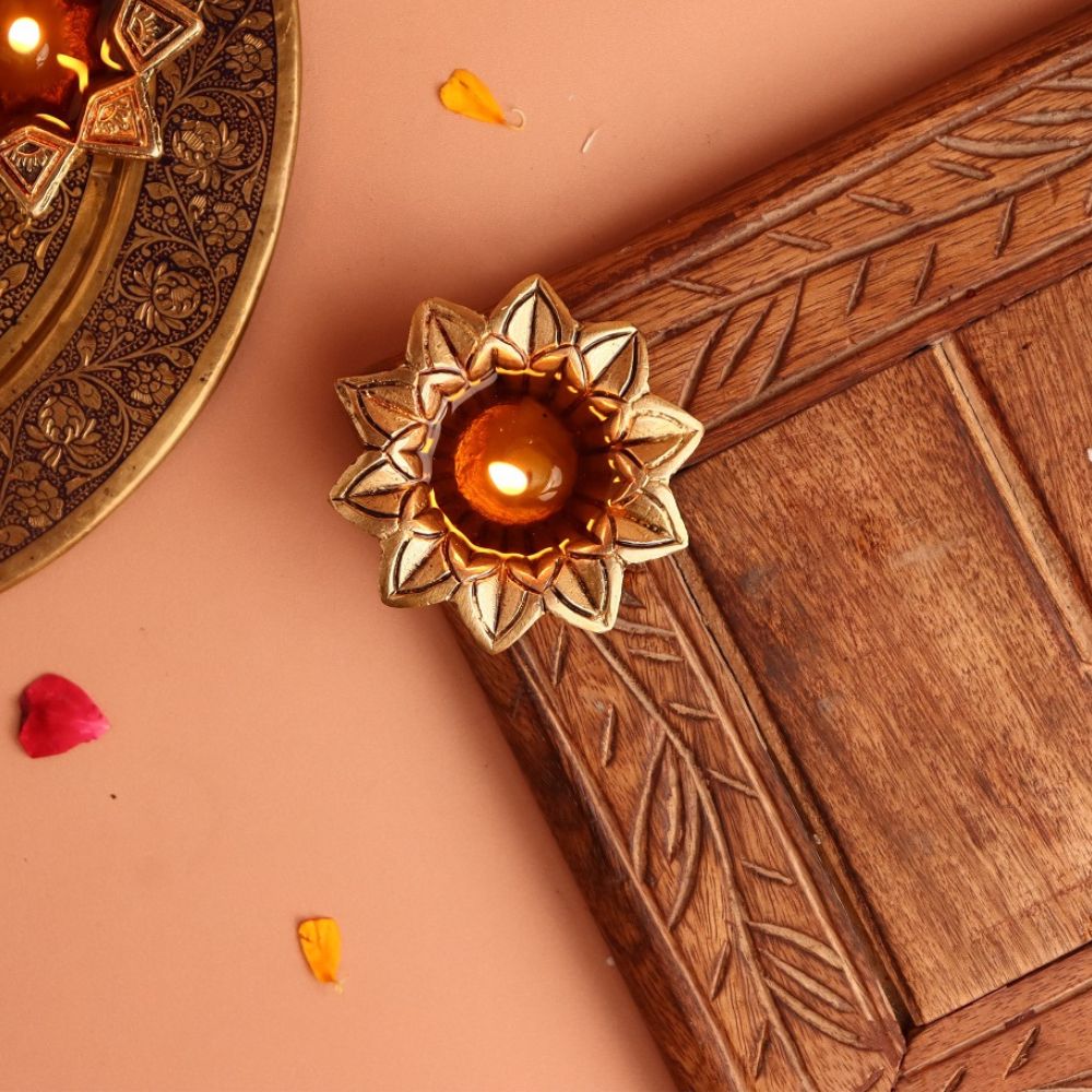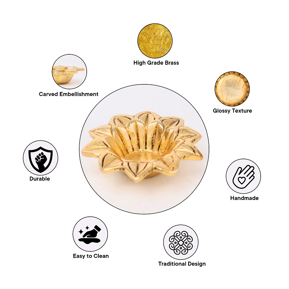 The Hindu Religious Brass Open Flower Oil Lamp is a stunning and meaningful addition to any sacred space. Made from high-quality brass and designed in the shape of an open flower, this oil lamp exudes spiritual energy and reverence. It is ideal for lighting during prayers, pujas, or festivals, providing a warm, divine glow to your rituals while symbolizing purity and devotion.