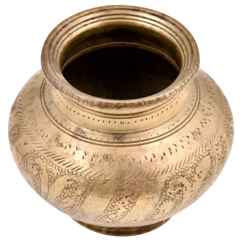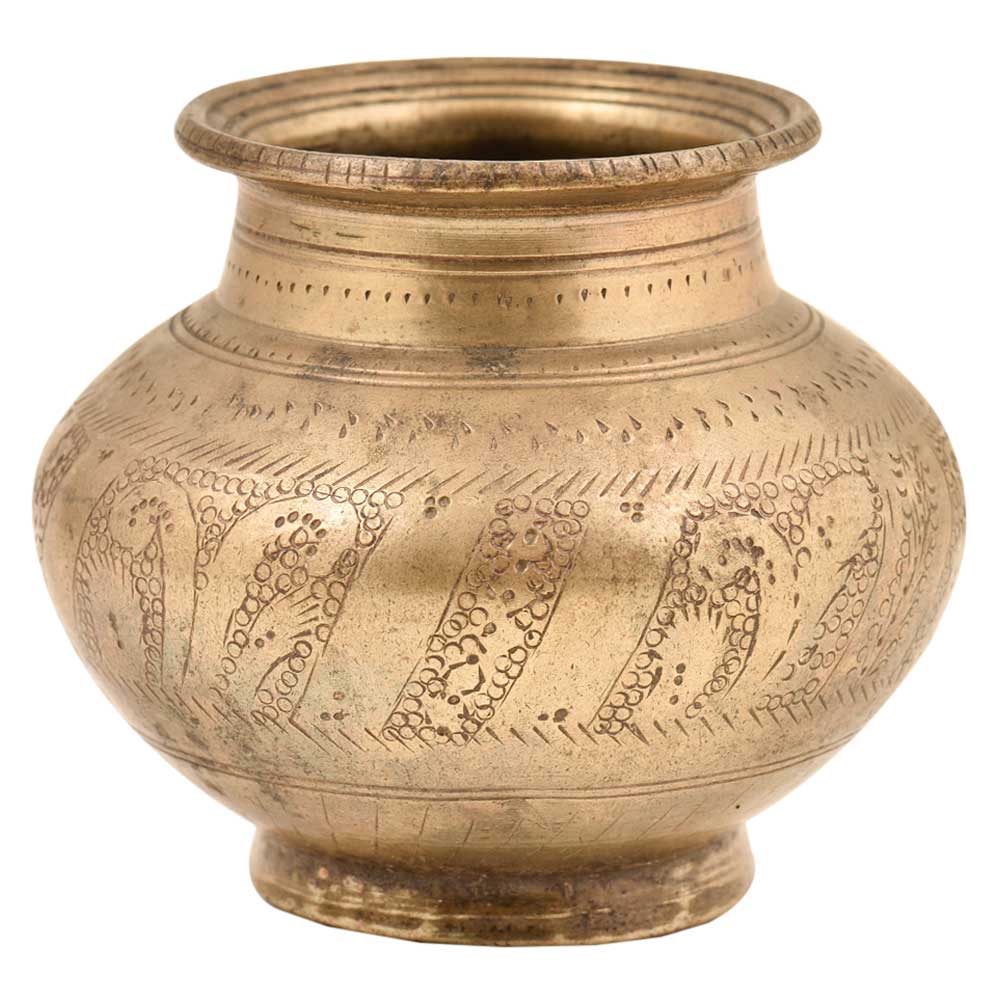 Hindu Religious Engraved Floral Design Bulbous Form Water Pot