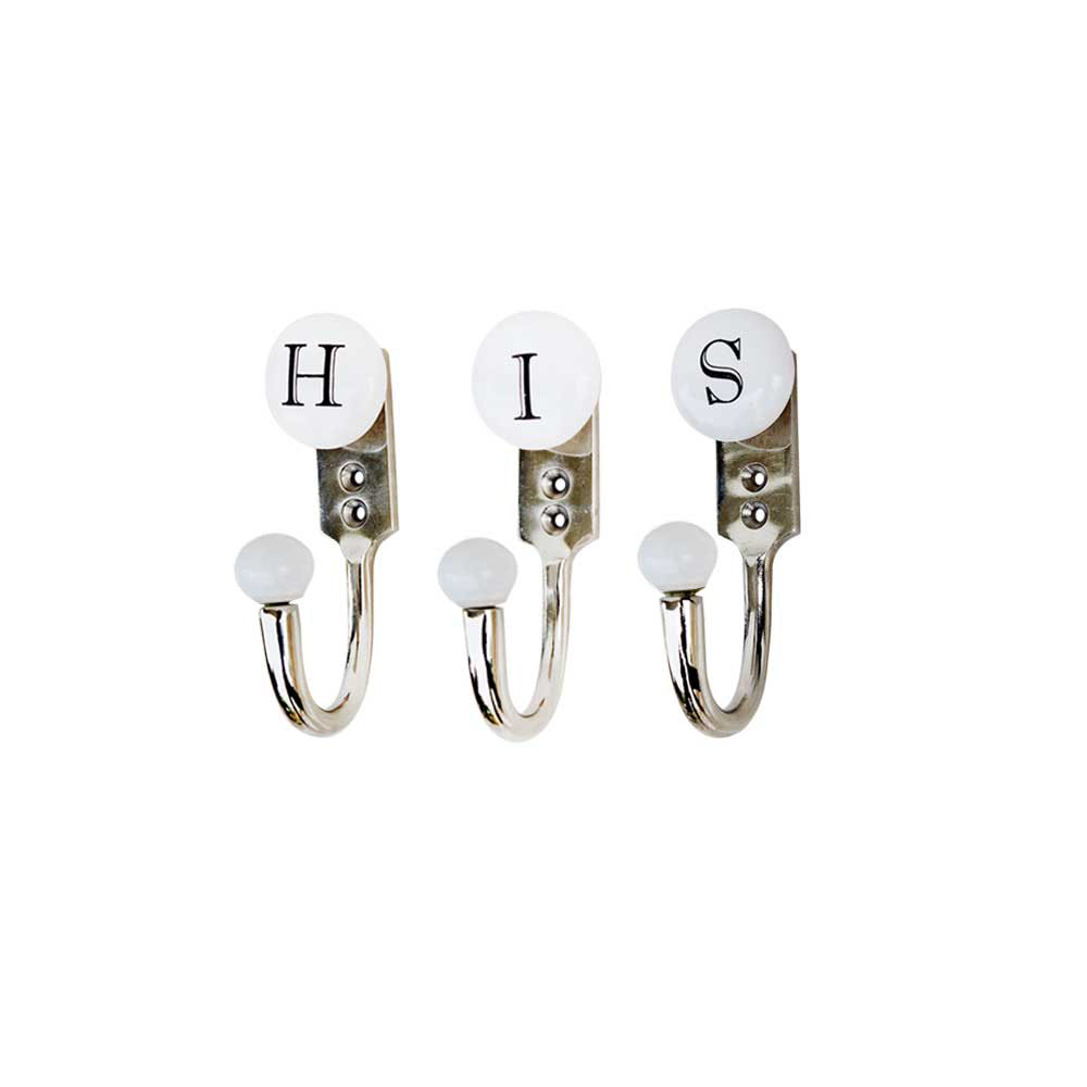 HIS white and black alphabet hooks (combo pack). When put on wall or cabinet it is an art in itself. This hook is strong enough to hold your keys, tea cups, hand towels, cloths etc.
