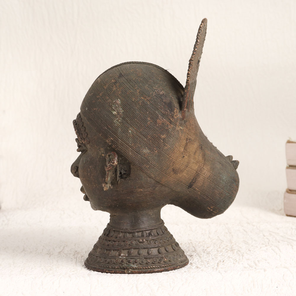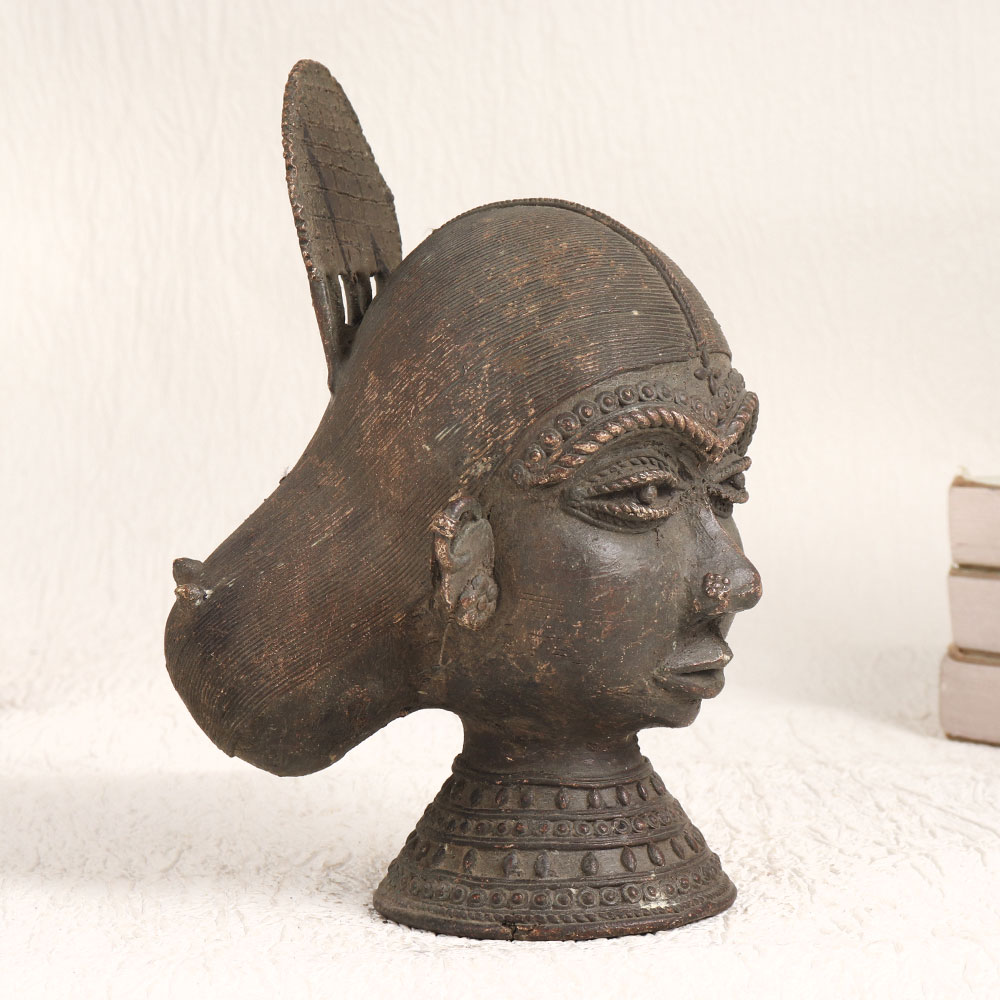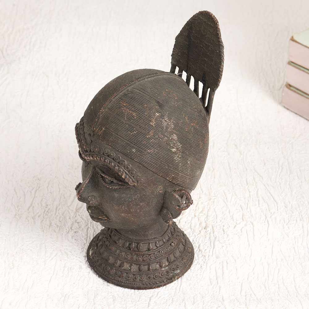 Enhance the spiritual ambiance of your space with this exquisite Brass Goddess Parvati Head Statue. Handcrafted by professional Indian artisans hailing from the culturally rich region of Odisha, this stunning piece embodies the essence of divine beauty and craftsmanship. Cast in high-quality brass and finished with an antique brown patina, this Parvati statue showcases exceptional attention to detail. The intricate design captures the serene and compassionate expression of Goddess Parvati, the divine consort of Lord Shiva. Versatile in its application, this statue can grace your home, office, restaurant, hotel, cafe, or shop, serving as a captivating piece of decor or an object of devotion within a prayer room. Its timeless elegance makes it a valuable addition to vintage collections or exhibition displays. As a thoughtful gesture, this brass Parvati head statue can be presented as a cherished gift to your loved ones on special, festive, or auspicious occasions, symbolizing blessings, beauty, and spiritual serenity.
