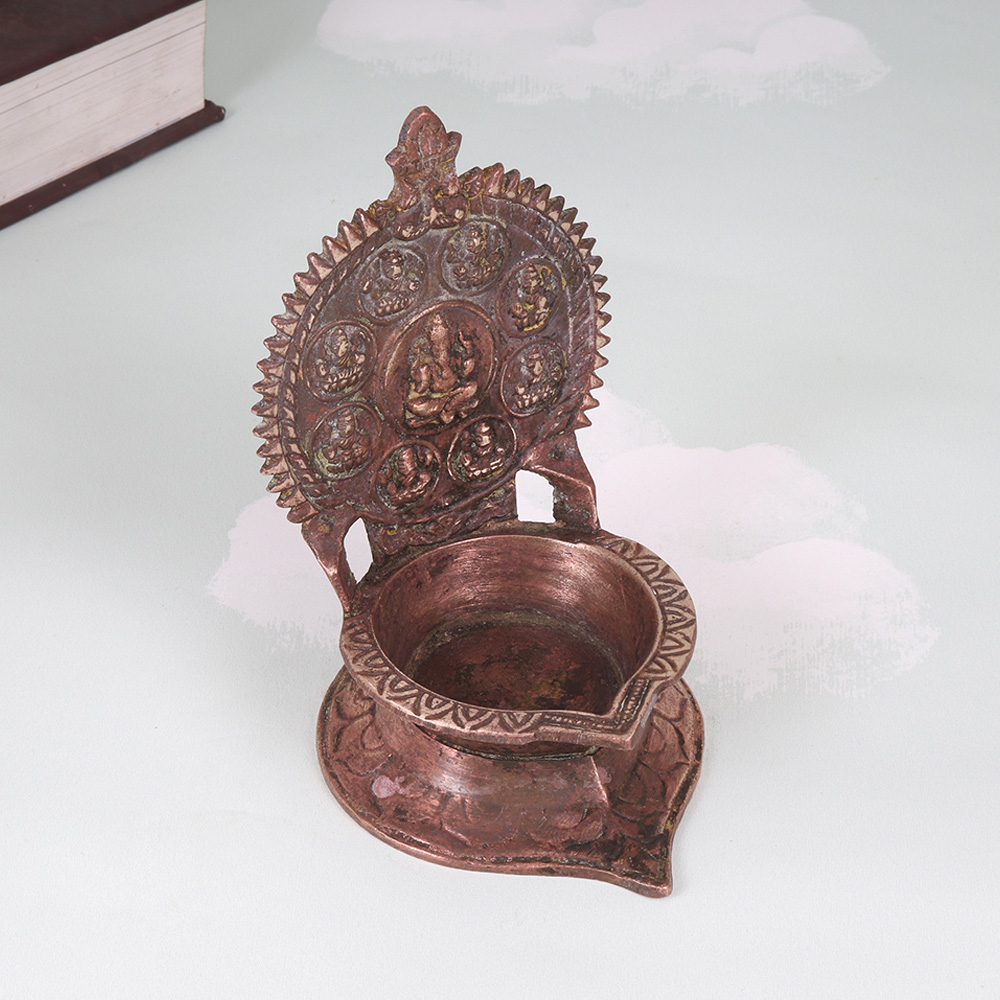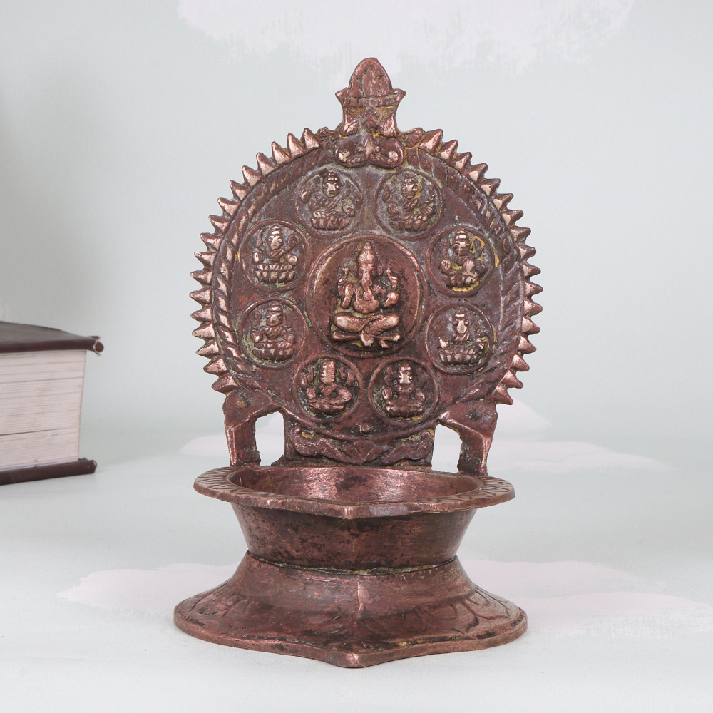 Invite the blessings of the Goddess Lakshmi into your home with this stunning brass oil lamp. The Gaja Lakshmi design, featuring the goddess seated atop her elephant mount, is a powerful symbol of wealth, wisdom, and divine protection. Crafted with exceptional attention to detail, this lamp will elevate your sacred rituals and meditation practice, filling your space with a warm, soothing light. Whether placed on your altar, mantelpiece, or side table, the Gaja Lakshmi oil lamp will become a treasured centerpiece, radiating positive energy throughout your home. Its classic Indian art design makes it a beautiful addition to any décor, from modern minimalist to traditional. Light the wick and let the gentle flickering flames transport you to a state of deeper calm and clarity, as you connect with the divine feminine energies. Treat yourself or a loved one to this exquisite piece of South Indian art. The Gaja Lakshmi oil lamp will inspire your spiritual journey, while elevating the ambiance of any room. Experience the timeless allure of this stunning brass lamp and invite prosperity, abundance, and enlightenment into your life.