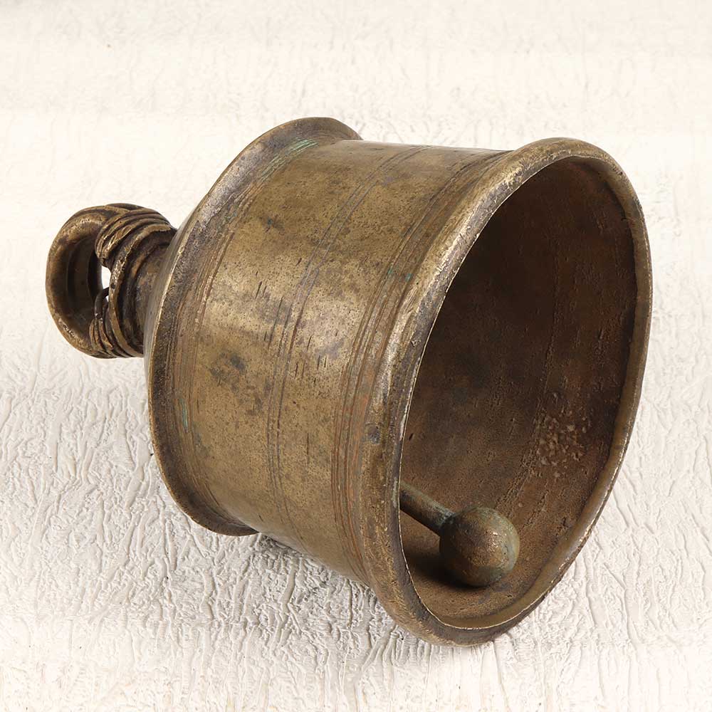 Ring in tranquility and peace of mind with this bell metal temple bell. Cast from durable bell metal, this vintage temple bell features a classic plain design and earthy brown finish, evoking a sense of ancient spiritual traditions. Let the rich, resonant tone of this bell wash over you, transporting you to a calmer state of being. With each ring, feel tensions and worries slip away as the vibrations resonate through your mind and body. Hang in your home, office, or sacred space to create an ambiance of serenity and mindfulness. Crafted to last, this high quality vintage temple bell makes a meaningful addition to any spiritual practice. The tone is said to have purifying and cleansing properties. Use it to call people to meditation, mark time, dispel negative energy, or simply as an instrument of peace. A beautiful way to invite tranquility into your life.