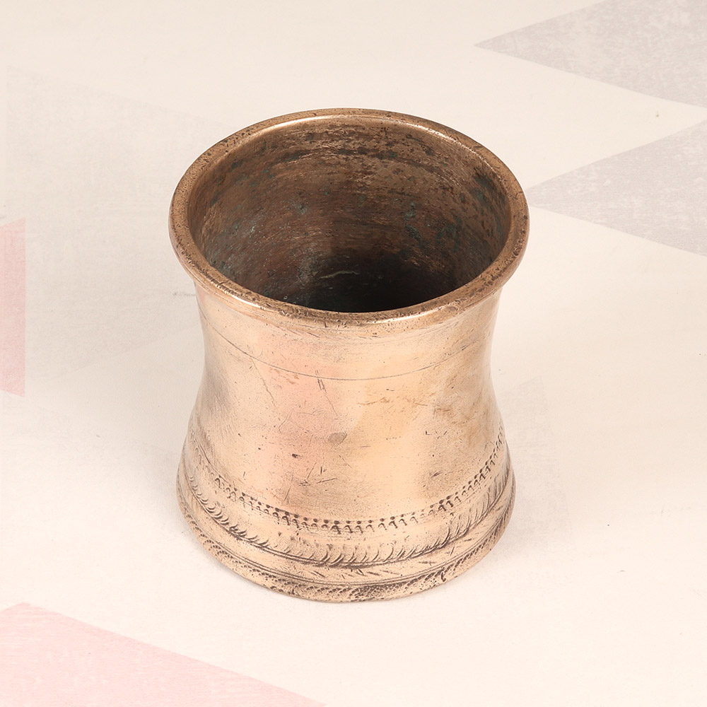 Unlock the timeless beauty and spiritual significance of South Indian art with this stunning brass Panchpatra pot. Crafted with meticulous attention to detail, this vintage masterpiece is a captivating centerpiece for your sacred rituals and ceremonies. Embrace the rich cultural heritage of South India as you incorporate this Panchpatra pot into your daily spiritual practice. The five bowls, representing the five elements of nature, allow you to make comprehensive offerings with ease and elegance. Experience the profound sense of connection as you perform time-honored rituals in the presence of this exquisite vessel. This Panchpatra pot is not just a functional tool; it's a work of art that will elevate the ambiance of your sacred space. Whether you're a seasoned practitioner or new to the world of Hindu rituals, this stunning brass piece will become a cherished addition to your spiritual journey. Invite the divine into your home and let the Panchpatra pot inspire you to deepen your connection with the sacred.