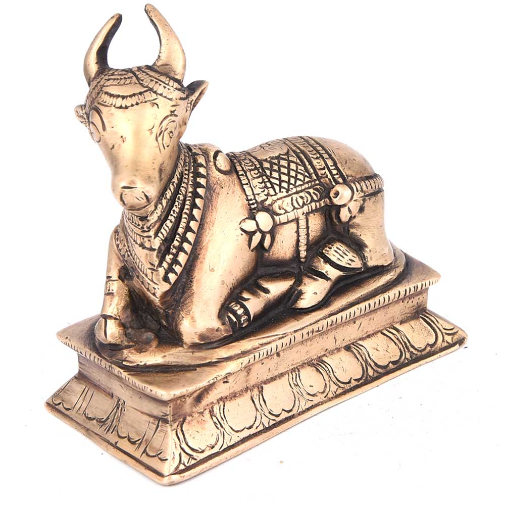 • Holy Nandi Bull Figurine in Brass
