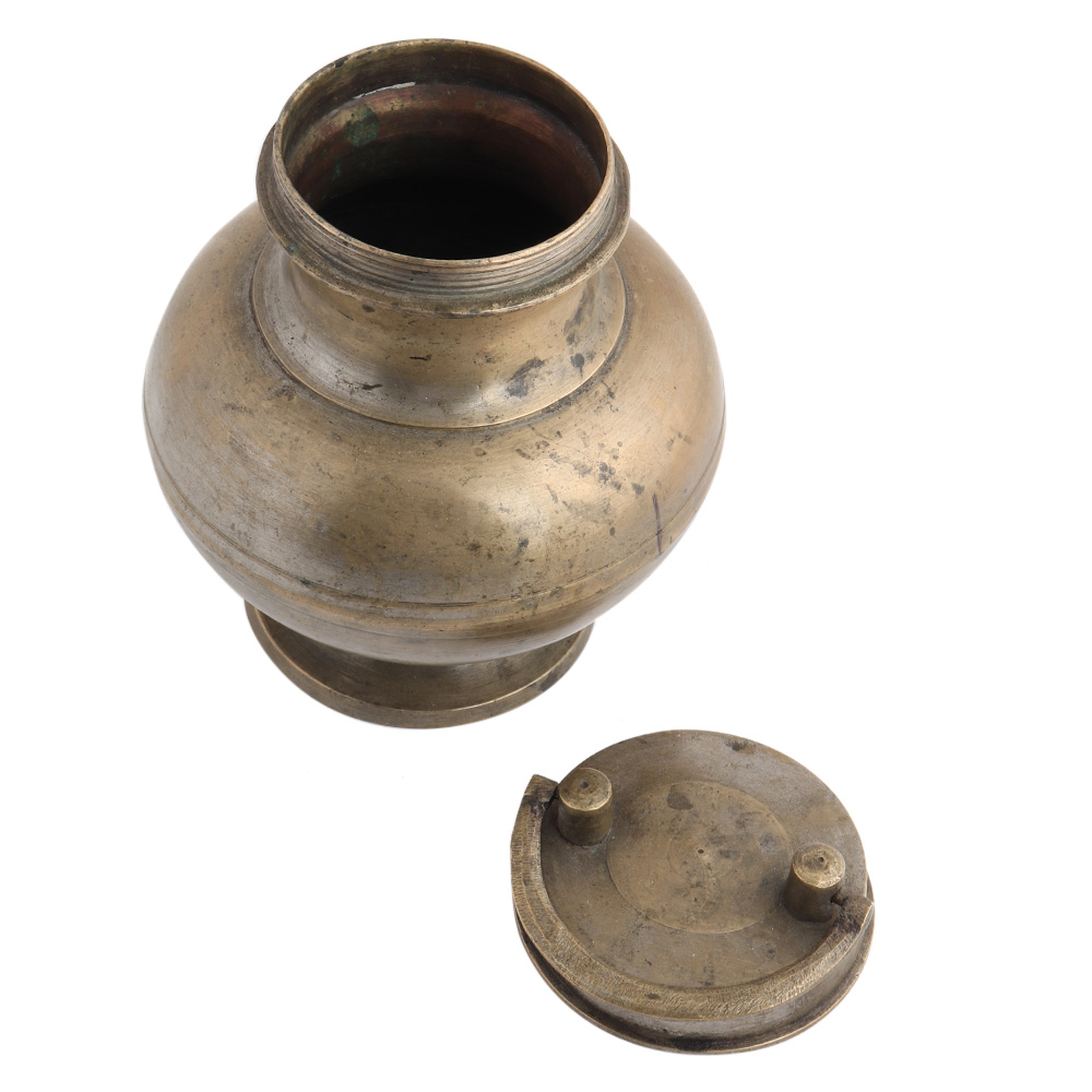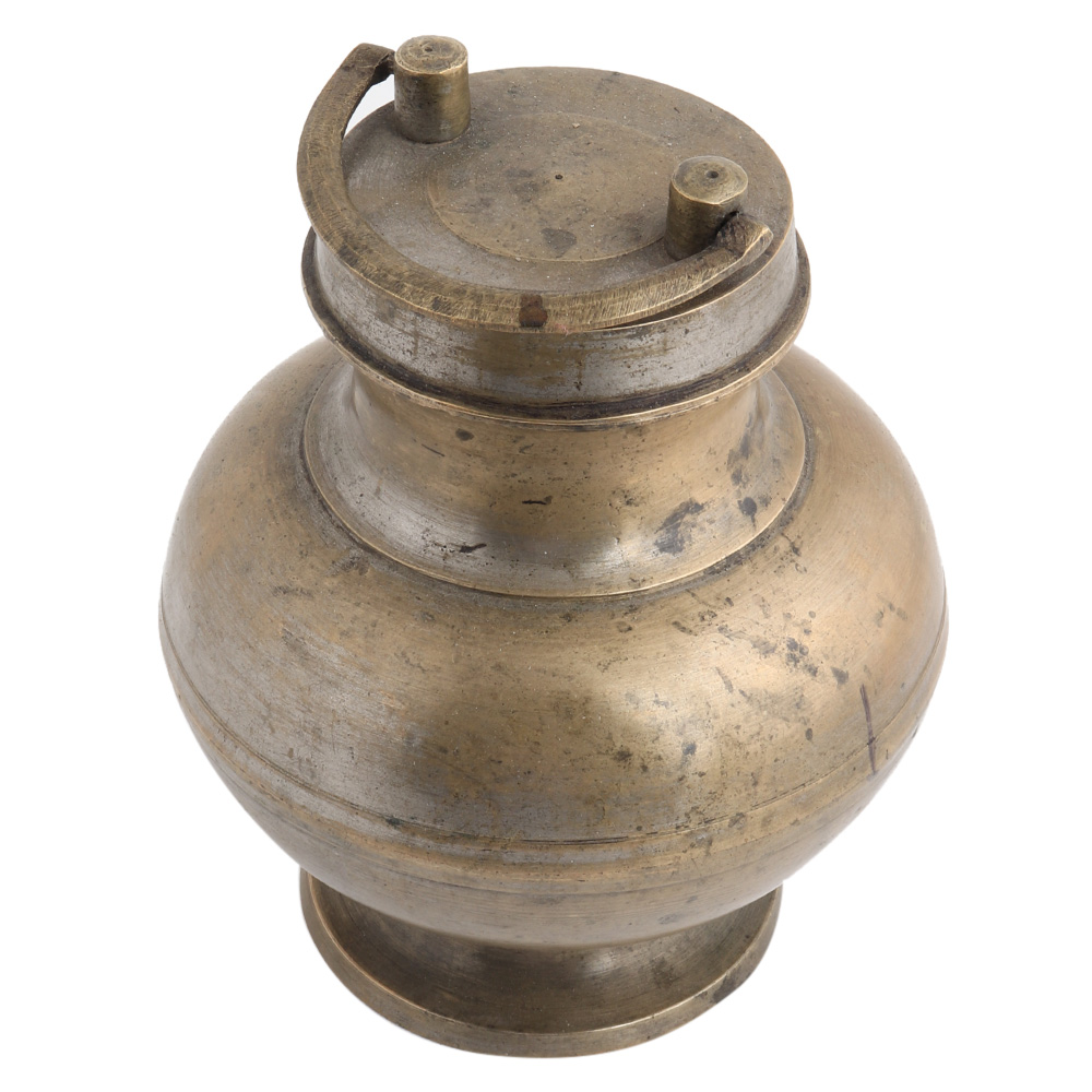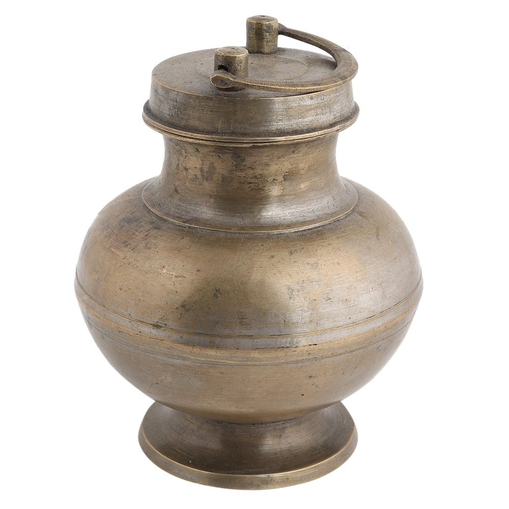 The Vintage holy water pot with handle & lid is an amazing display of traditional Indian artwork. Such crafts are unique and special, which makes them a perfect fit for your kitchen decor plans. This Vintage holy water pot with handle & lid also helps you to amp your puja room decor. The beautiful patina on the simple design makes it a perfect addition to your home decor plans. The same is ideal for storing Holy water or panchamrit.