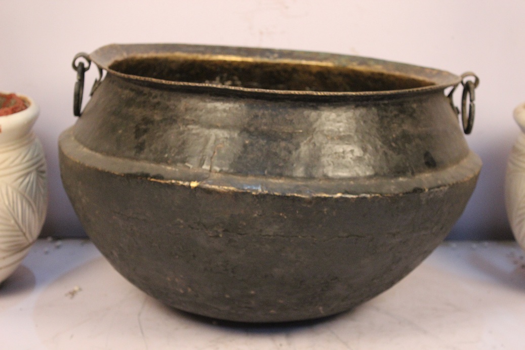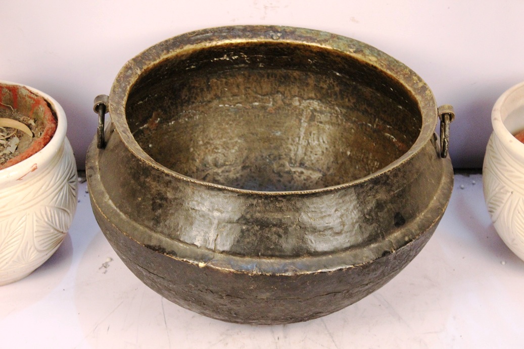 Huge Hammered Brass Garden Planter/ Handled Pot