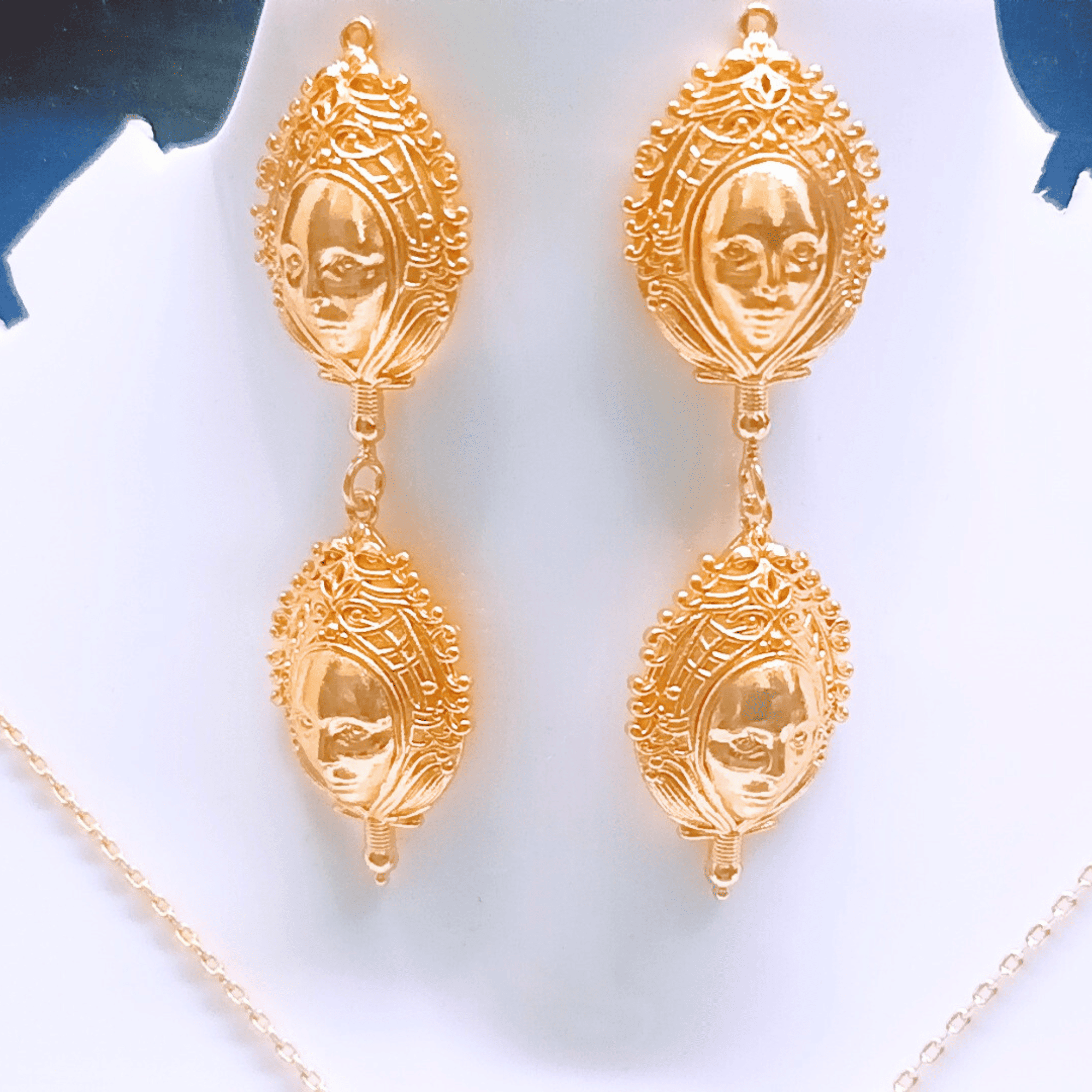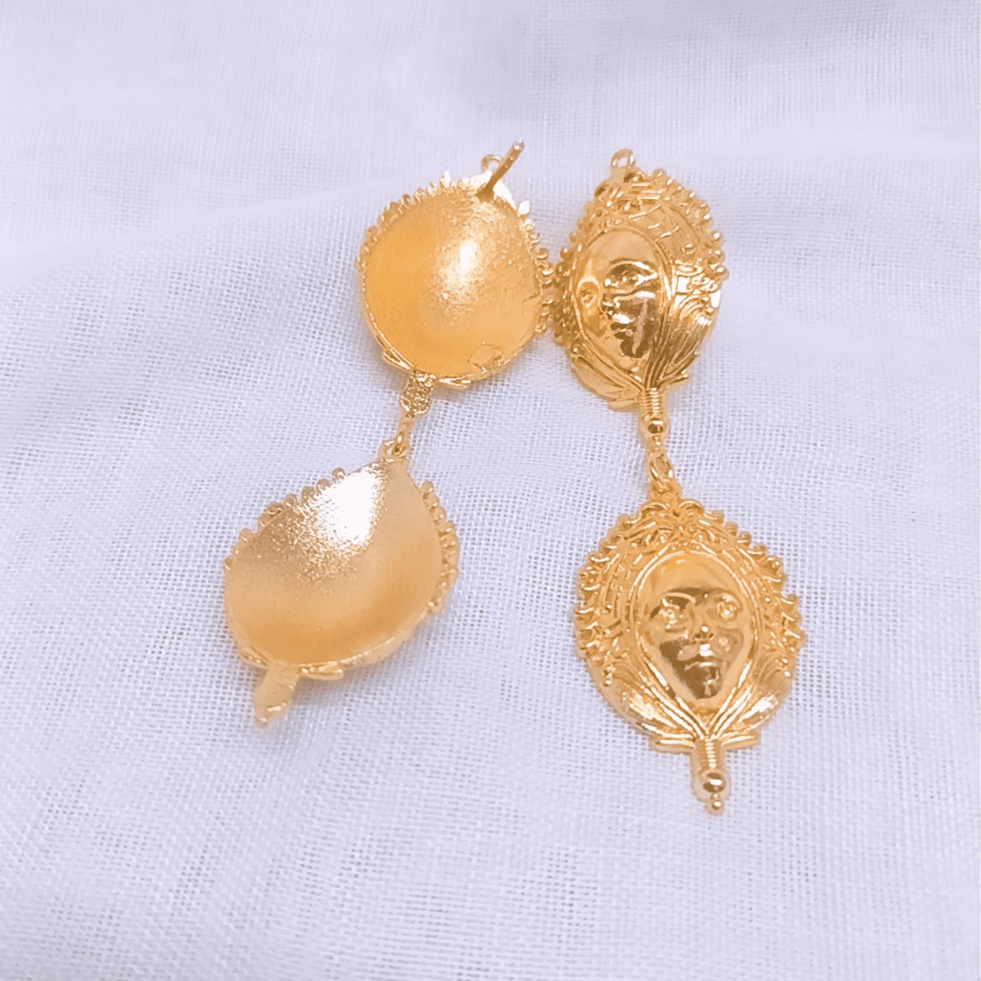 The Human Face Dangle Earrings are a stunning blend of art, emotion, and craftsmanship — transforming brass into wearable sculptures. Handcrafted by skilled artisans and plated with radiant 22K gold, these earrings feature an abstract human face design that celebrates individuality and creative expression. Their fluid lines and elegant finish make them a bold yet graceful statement piece, ideal for women who value originality and handmade artistry.
