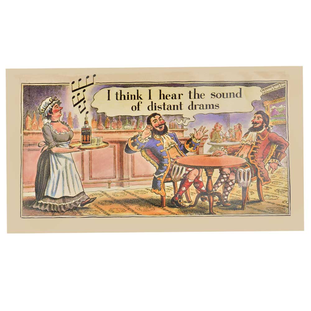 Liquor Signed Color Poster Every Sip is pure music Seagram's 100 Pipers Rare Color Litho print depicting Bar Scene-A female bar girl approaching customer with liquorbottle.