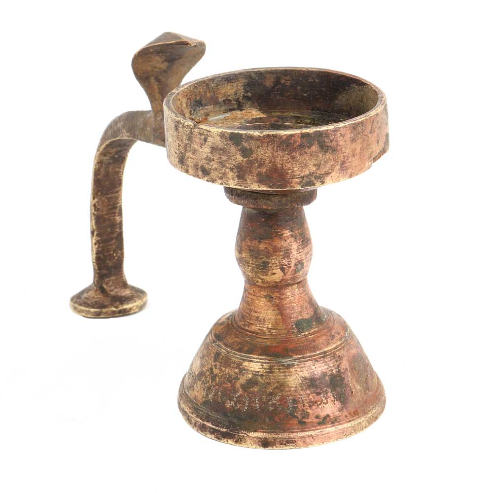 India Brass Oil Lamp With Cobra Head With Long Handle