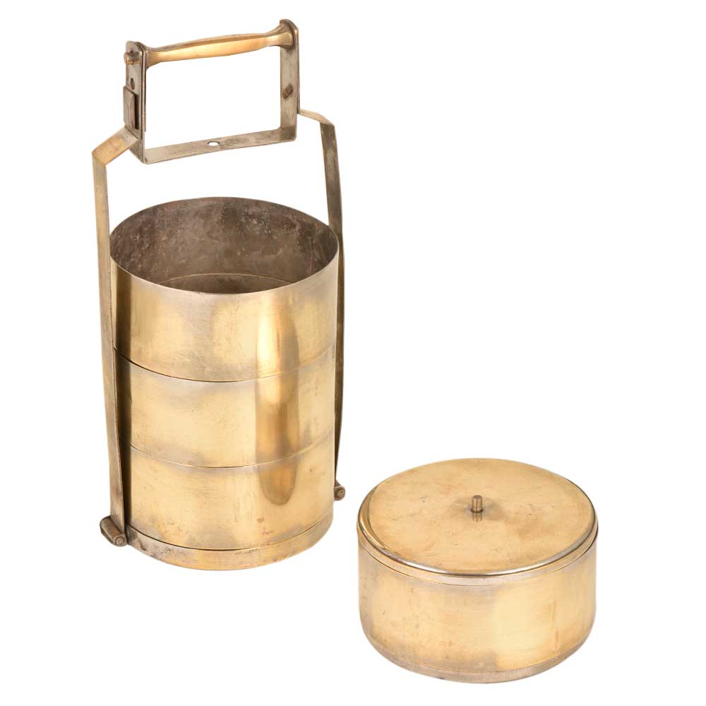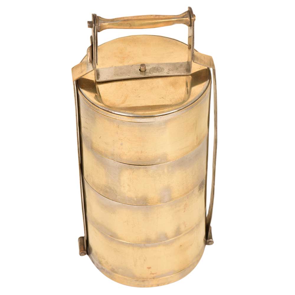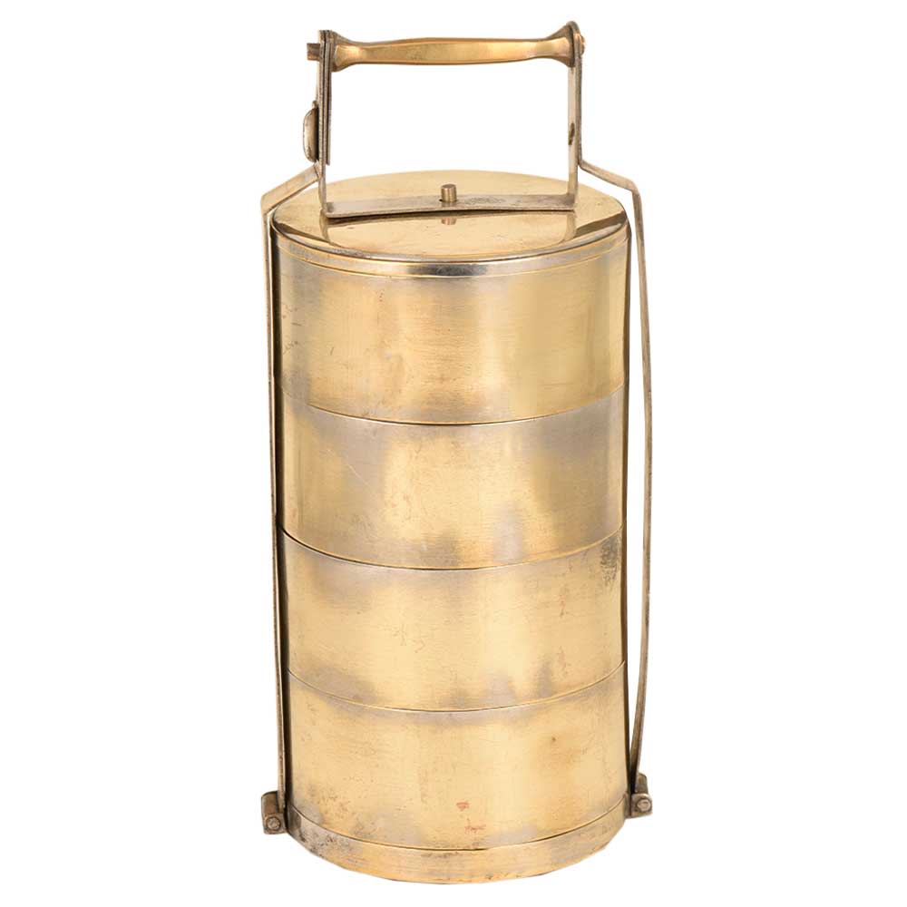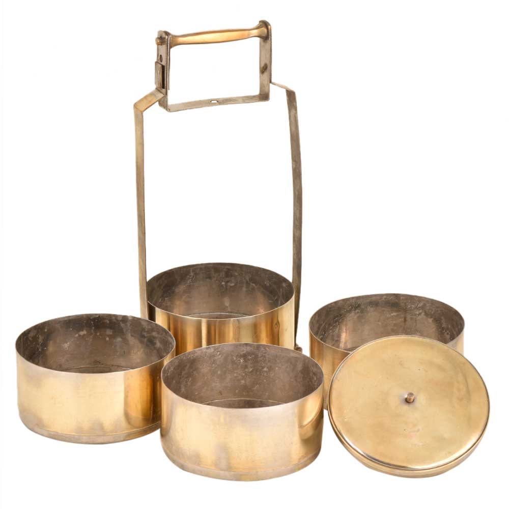 India Old Brass Tiffin lunch Box With 4 Compartment