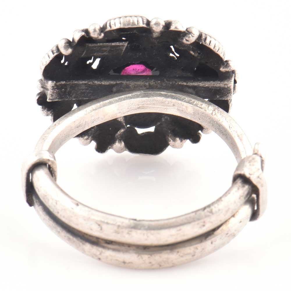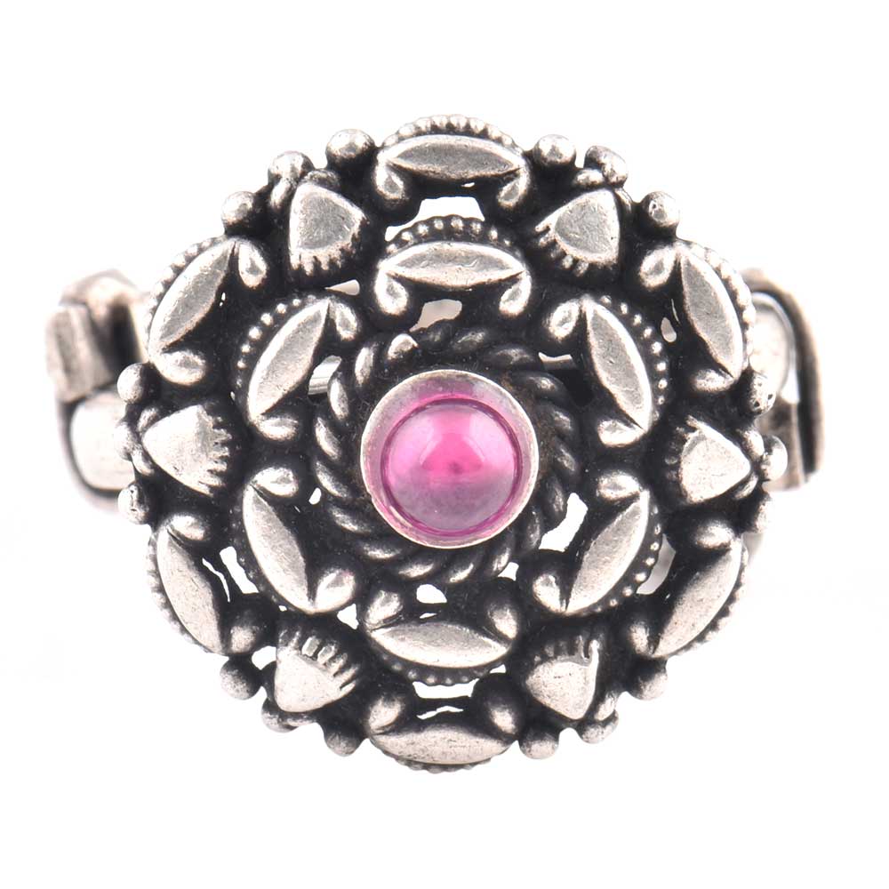 • Indian 92.5 Sterling Silver Ring Embossed Design Around Round Amethyst Formal Wear Jewelry (Free Size)