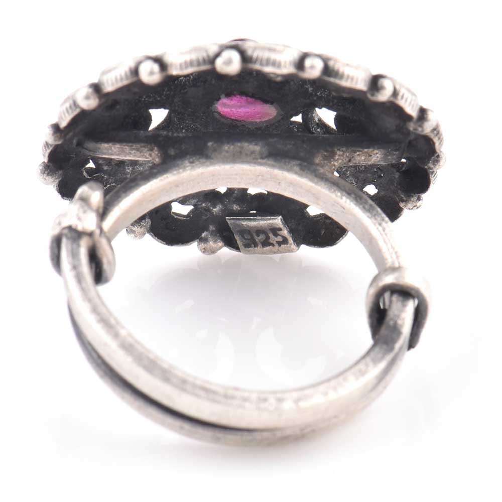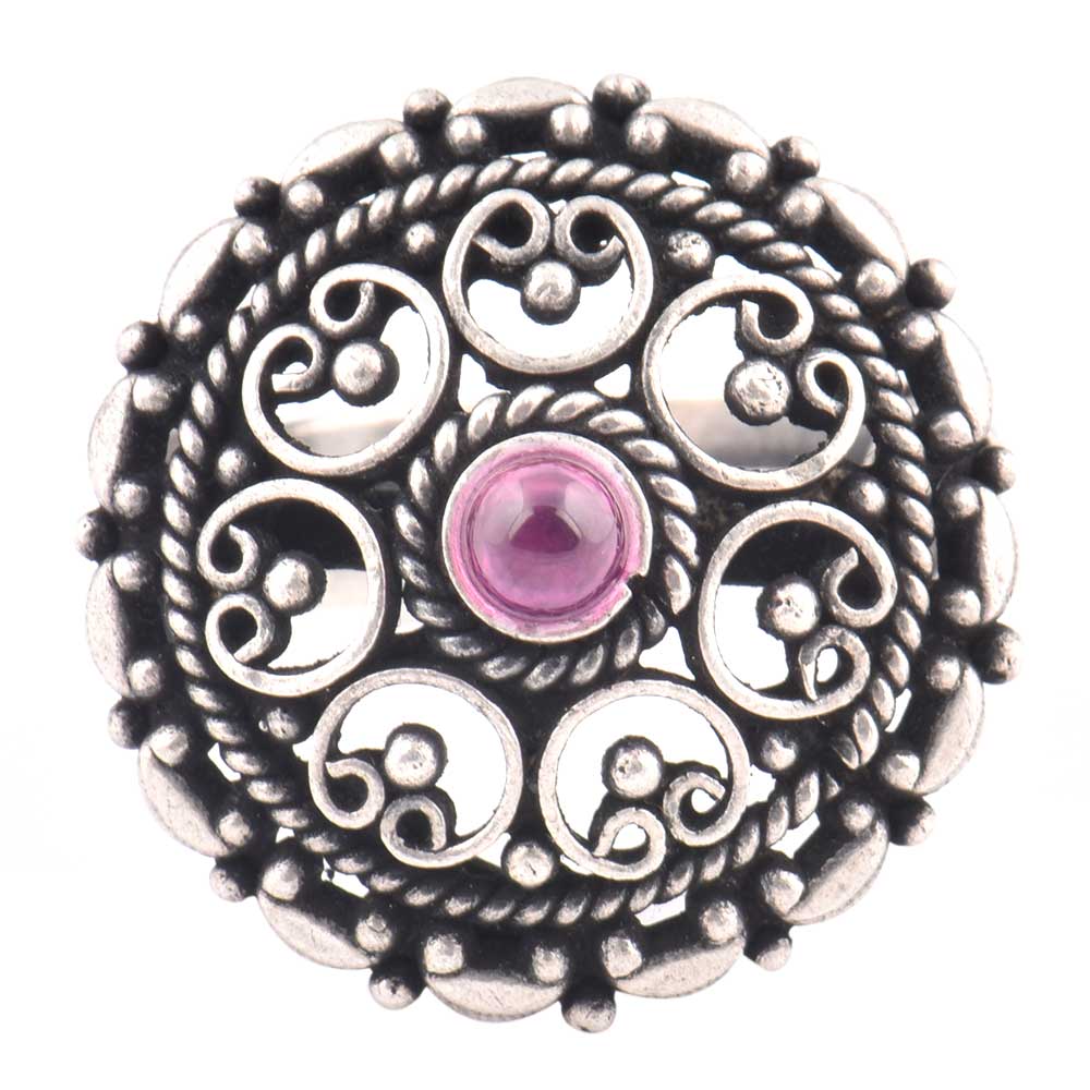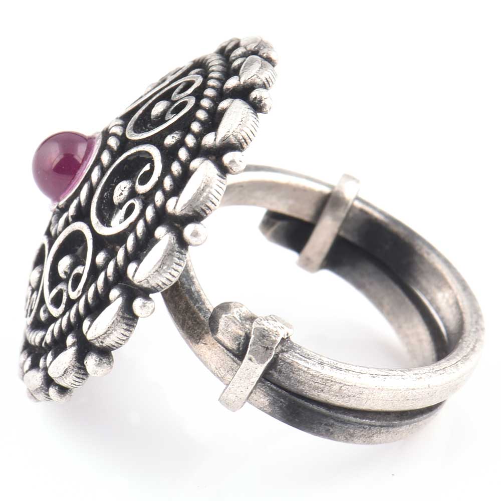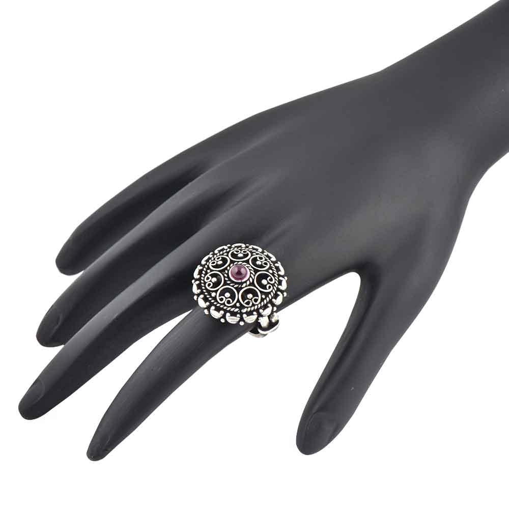 • Indian 92.5 Sterling Silver Ring  Filigree Design Round Amethyst Ring For Women (Free Size)