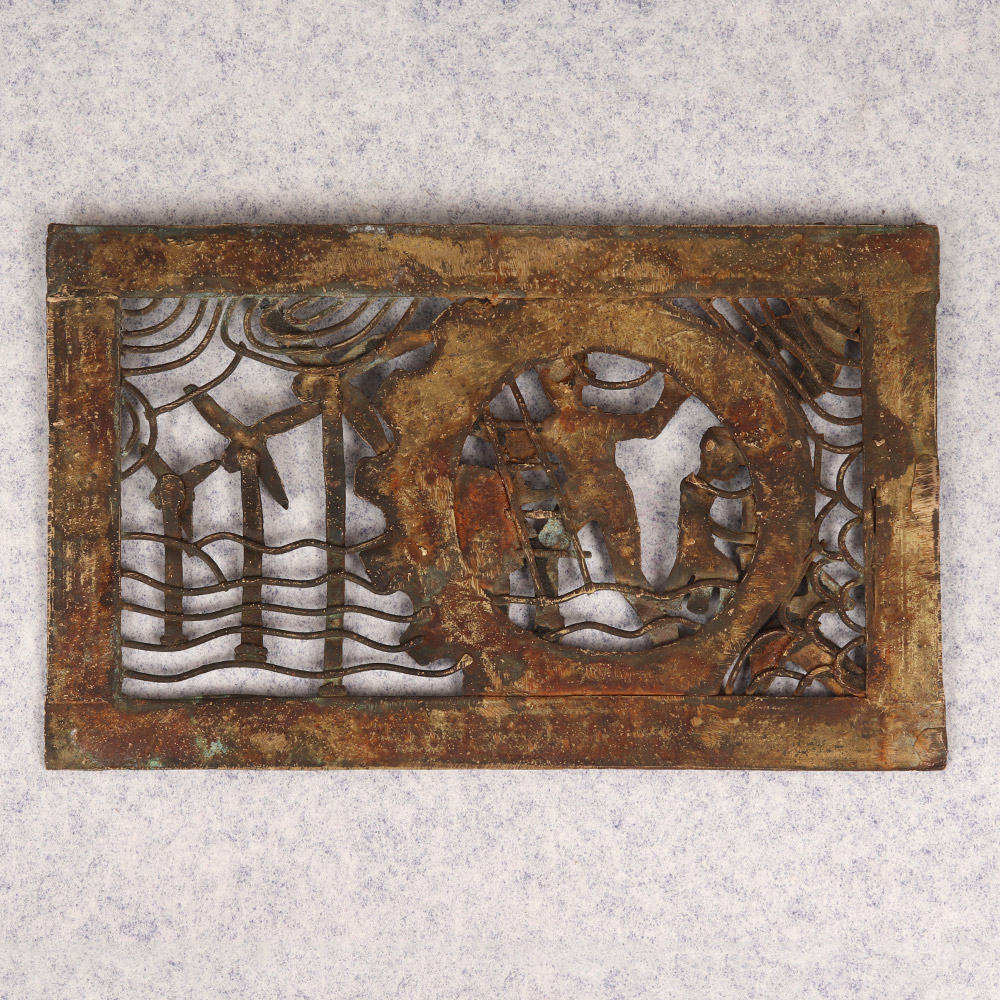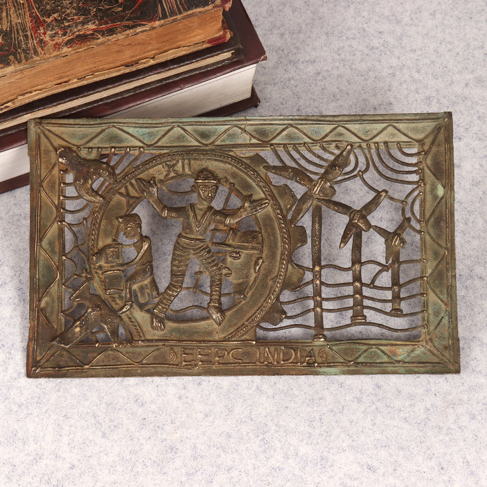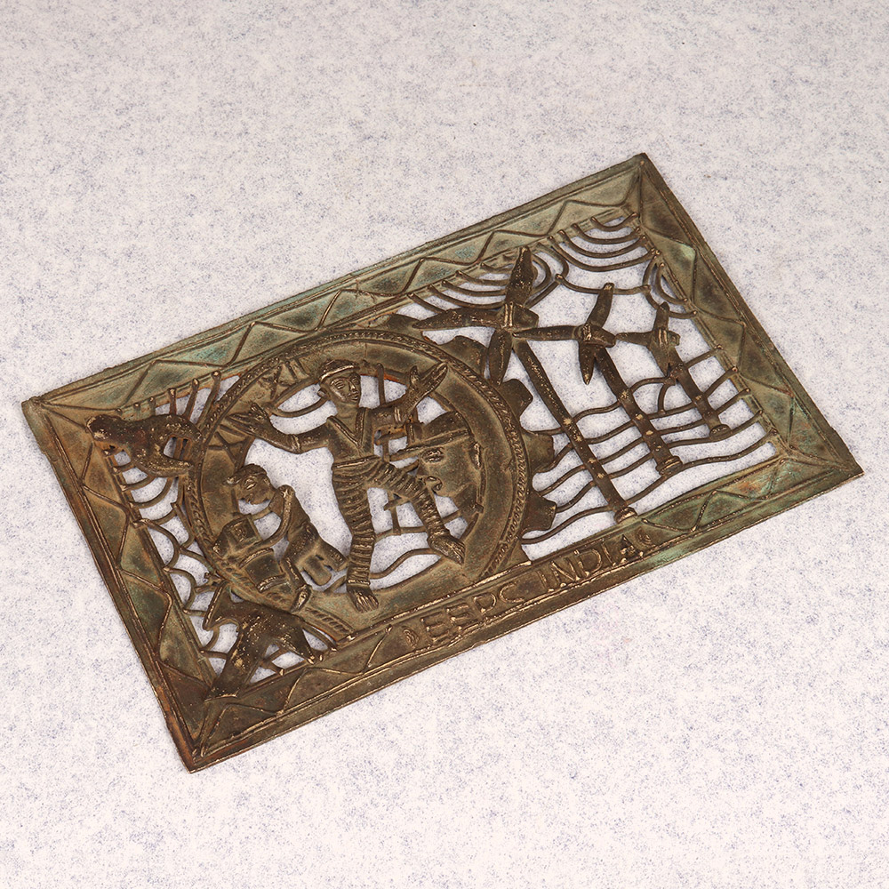 Discover the captivating beauty of ancient tribal art with this exquisite vintage brass Jali. Meticulously crafted by skilled artisans, this intricate screen showcases the timeless traditions of South Asian design. This breathtaking Jali isn't just a piece of art - it's a portal into a rich, vibrant culture. The delicate, interlocking patterns evoke the grand palaces and temples of India, India, and the Middle East. Displaying this Jali in your home is like bringing a little bit of ancient wonder into your everyday life. Whether you're drawn to eclectic global design or simply appreciate timeless craftsmanship, this Jali is a must-have addition to your space. Use it to add a touch of exotic elegance to your living room, bedroom, or office. Or let it take center stage as a stunning focal point that commands attention. Infuse your space with the mystique of the East. Bring home this stunning vintage brass Jali and let its beauty transport you to distant lands.