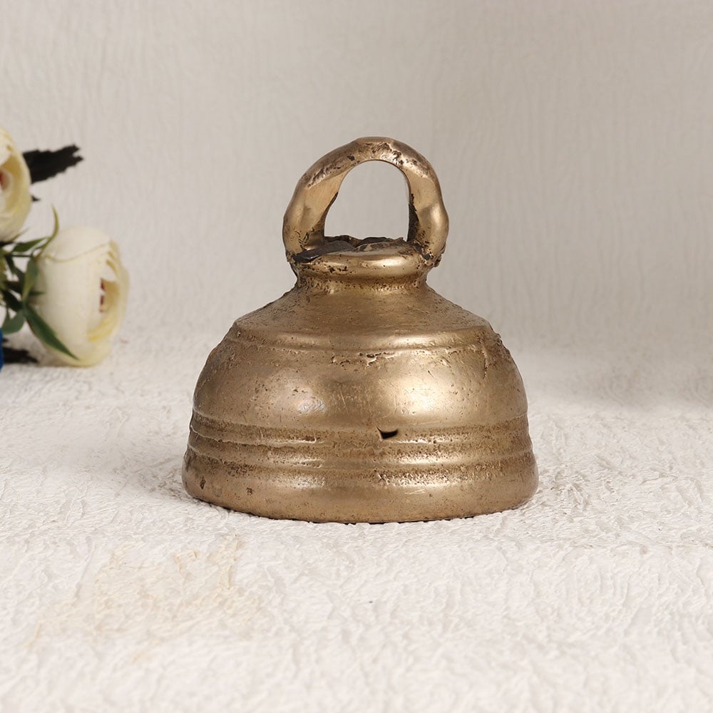 Buy a Vintage Bell Metal Bell online that is meticulously crafted by highly skilled Indian artisans in the timeless tradition of Himachal Art. This bell exudes an air of antique charm with its rich brown finish, offering a touch of nostalgia and elegance to any space. Handmade with precision and care, this bell is forged from high-quality bell metal, ensuring its durability and resonant tones. Its intricate design and intricate detailing showcase the artisan's dedication to their craft, making it a captivating addition to your vintage collection or exhibition display. Versatility defines this bell's appeal, it can effortlessly grace your home, office, restaurant, hotel, cafe, or shop, enhancing the ambiance with its melodious chime. Alternatively, it can find its place in temples, prayer rooms, or spiritual sanctuaries as a sacred instrument for hanging, ringing, and invoking a sense of tranquillity. With its timeless allure, this Vintage Bell Metal Bell also makes for a heartfelt gift on special, festive, or auspicious occasions.