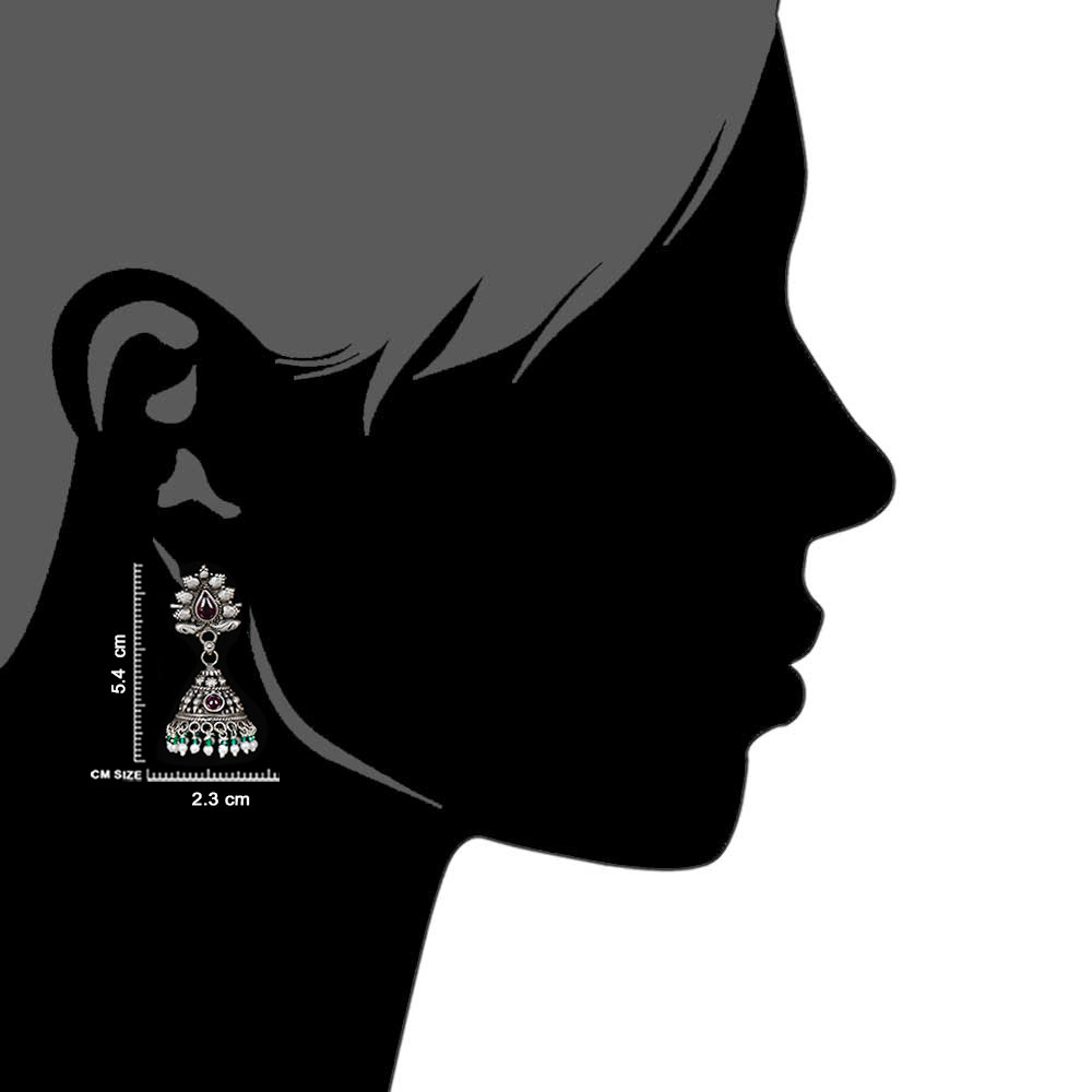 • Indian Bird 92.5 Sterling silver Earrings Jhumki with Green Peridot And Pearl Tassels