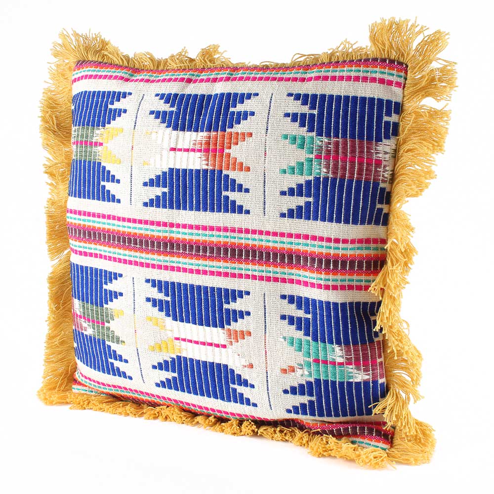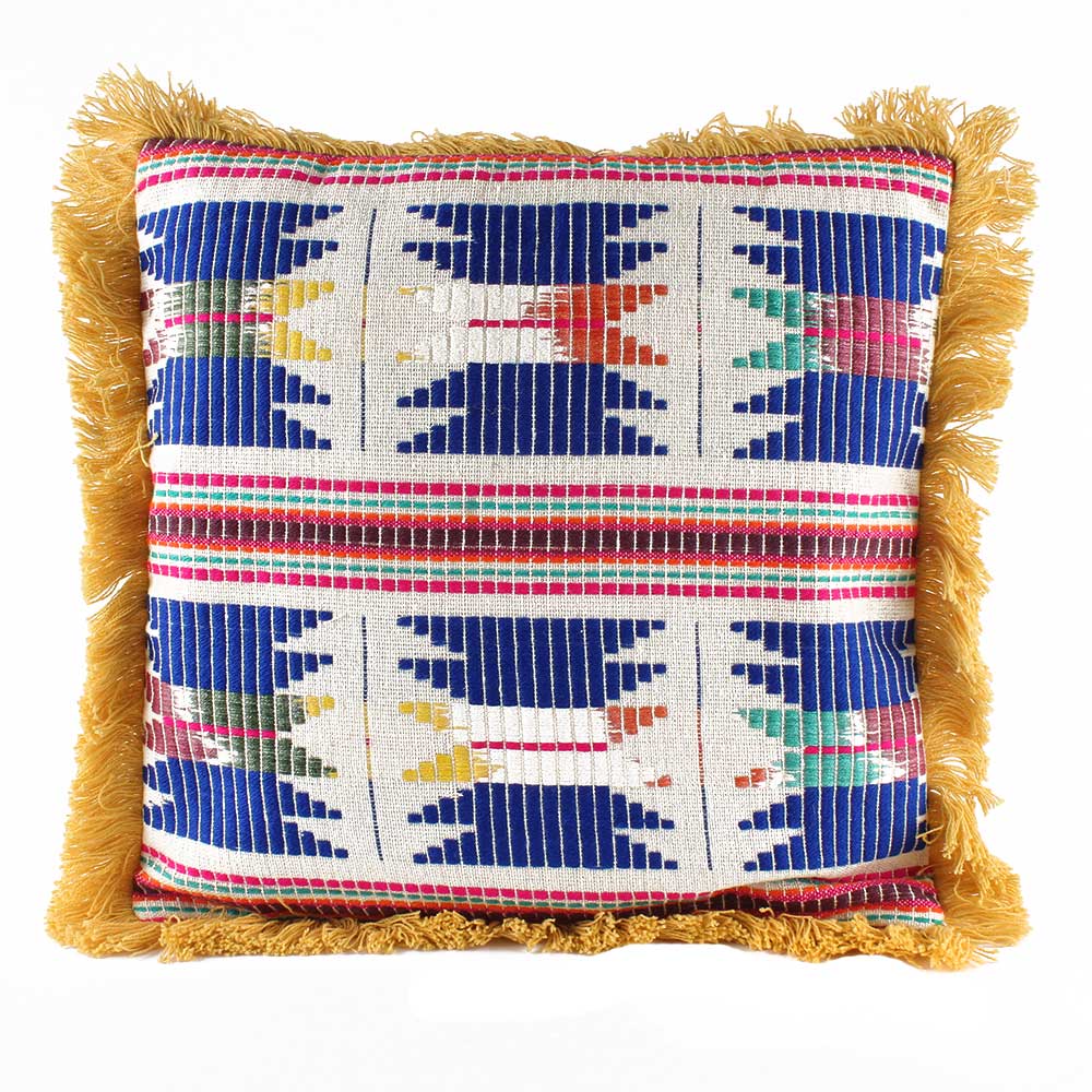 The wool loops, fringed motifs, and tassels around the sides add unique texture and embellishments to this modern boho pillow. This pillow complements a wide range of home decor styles.