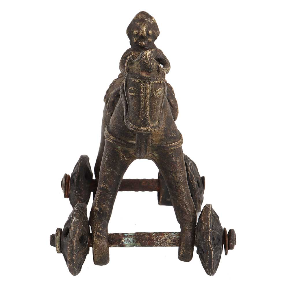Indian Brass Horse Temple Toy On Wheels Used to Occupy Children While Their Parents Were in Temple. The Originals Were Mostly Made of Bronze with Ornate Saddle. Nicely detailed figurine of a Toy Horse on wheel also know as pull Toy was used as a Toy and now used as a Collectors Office, Home decoration and house warming gift.