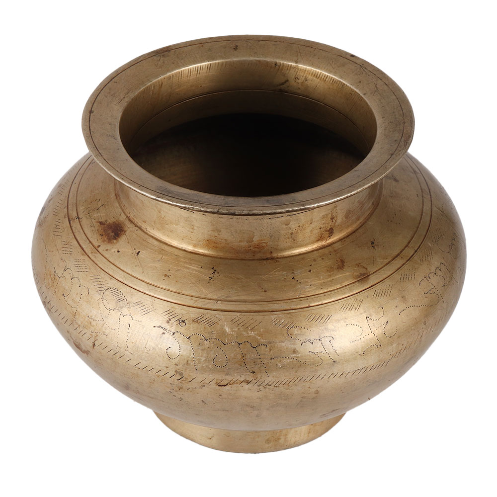 Buy a Brass Water Pot, also known as Lota, boasting a stunning antique brown finish. Meticulously crafted by highly skilled Indian artisans with their hands, this masterpiece is created using traditional methods passed down through generations. Constructed from high-quality brass, it not only showcases exceptional craftsmanship but also serves as a captivating decorative item. This Brass Water Pot holds great significance beyond its aesthetic appeal. When placed in the north or east direction of a house, it is believed to radiate positive energy, fostering a harmonious environment. In temples, it is often used to offer water to the sacred Shivling, acting as a conduit to absorb negativity from the surroundings and disseminate positive vibrations. Additionally, this elegant pot can be utilized to present water offerings to the Sun God, aiding in the maintenance of a balanced spirit and mind. With its versatile nature, the Brass Water Pot can also be employed as an indoor flower pot, adding a touch of elegance to any home or office space. Perfect for special occasions, festivals, or auspicious events, it makes an ideal gift for your beloved family, friends, or relatives.