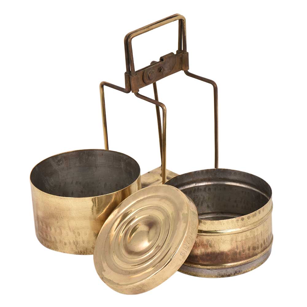 • Indian Brass Tiffin Box With Two Containers