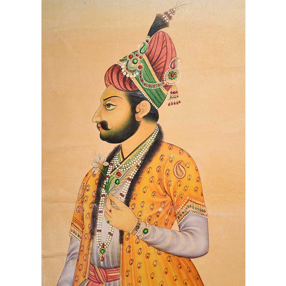 Indian Canvas Painting Of Mughal Emperor Jahangir