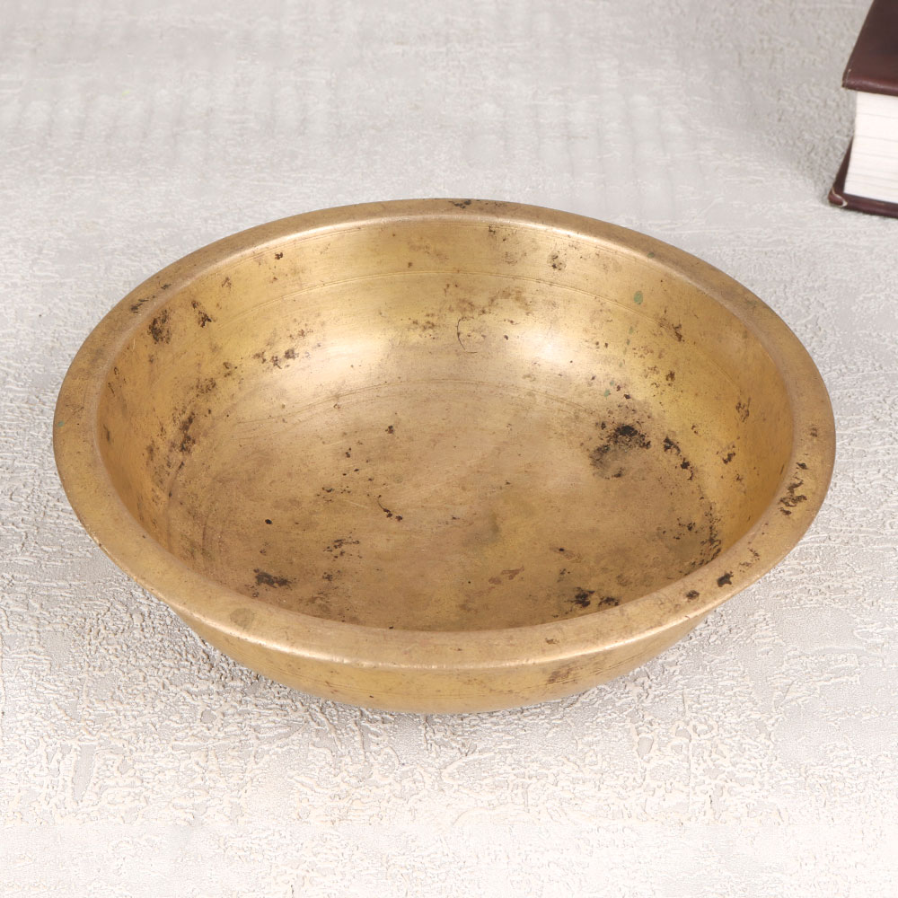 Celebrate timeless craftsmanship with our exquisite Antique Brass Bowl that is a versatile piece meticulously handcrafted by skilled Indian artisans. The bowl, with its antique brown finish, serves as a unique flower pot or a divine bathtub for deities in temples, seamlessly blending spirituality with aesthetic appeal. Forged from high-quality brass, this bowl is a testament to the artisan’s dedication to their craft, showcasing intricate details and a warm, inviting hue that exudes antiquity. Its versatile nature allows it to find a place in various settings, whether adorning your home, office, restaurant, hotel, or cafe, adding a touch of cultural richness to any environment. Perfect for collectors with a penchant for vintage treasures, this brass bowl becomes a cherished addition to your curated ensemble. Additionally, its timeless charm makes it an ideal gift for your loved ones during special, festive, or auspicious occasions, symbolizing both beauty and tradition.