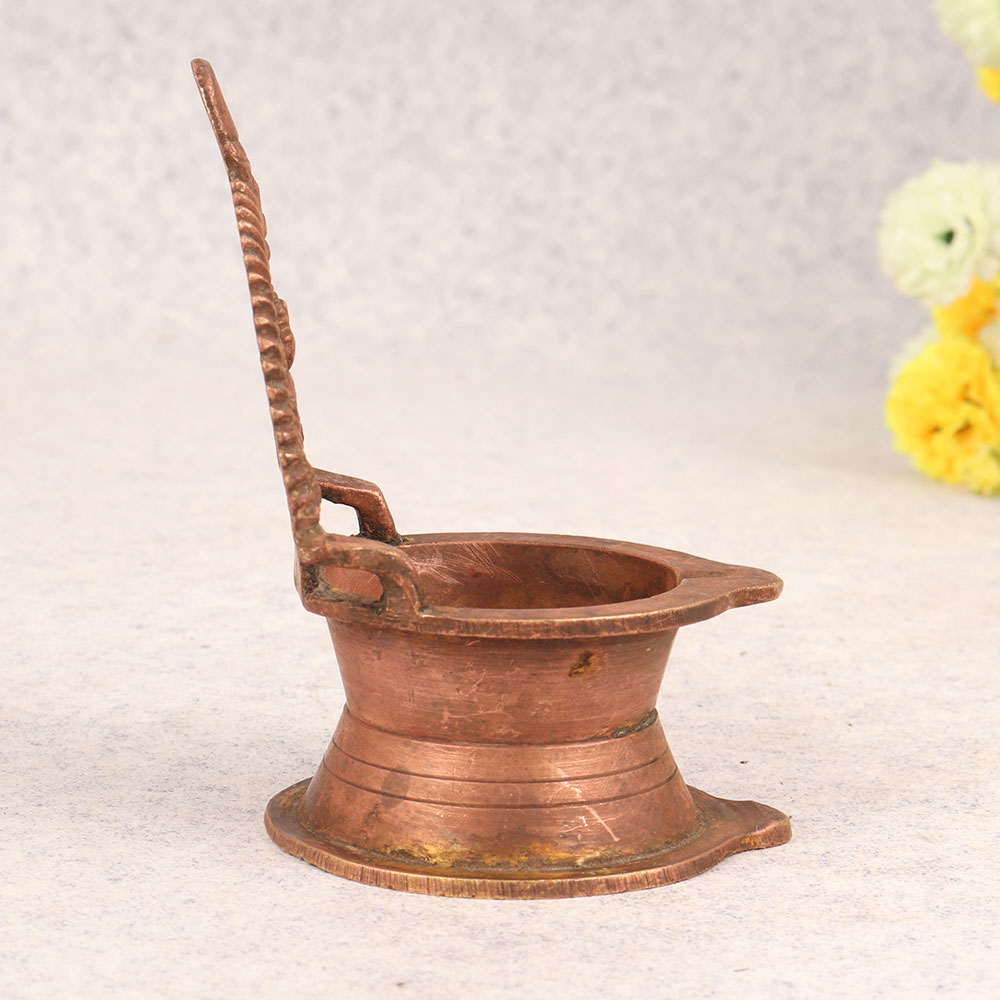 Buy a Vintage Brass Gajlakshmi Oil Lamp online which is a masterpiece crafted by highly skilled Indian artisans in the distinguished South Indian Art tradition. This exquisite piece is a harmonious blend of spirituality and artistry, meticulously handmade from high-quality brass with an antique brown finish that exudes timeless elegance. The lamp's design features the revered Gajlakshmi, symbolizing prosperity and divine blessings, making it a perfect addition to your prayer room at home, office, restaurant, hotel, or cafe. Its vintage charm transcends time, inviting a sense of sacredness into any space. The warm, antique brown hue adds a touch of nostalgia, creating an atmosphere of serenity during prayer and meditation. Not just a religious artefact, this oil lamp is a testament to the craftsmanship of Indian artisans, reflecting their dedication to preserving cultural heritage. Embrace the cultural richness by adding this piece to your vintage collection or share the blessing by gifting it to your loved ones on special, festive, or auspicious occasions.